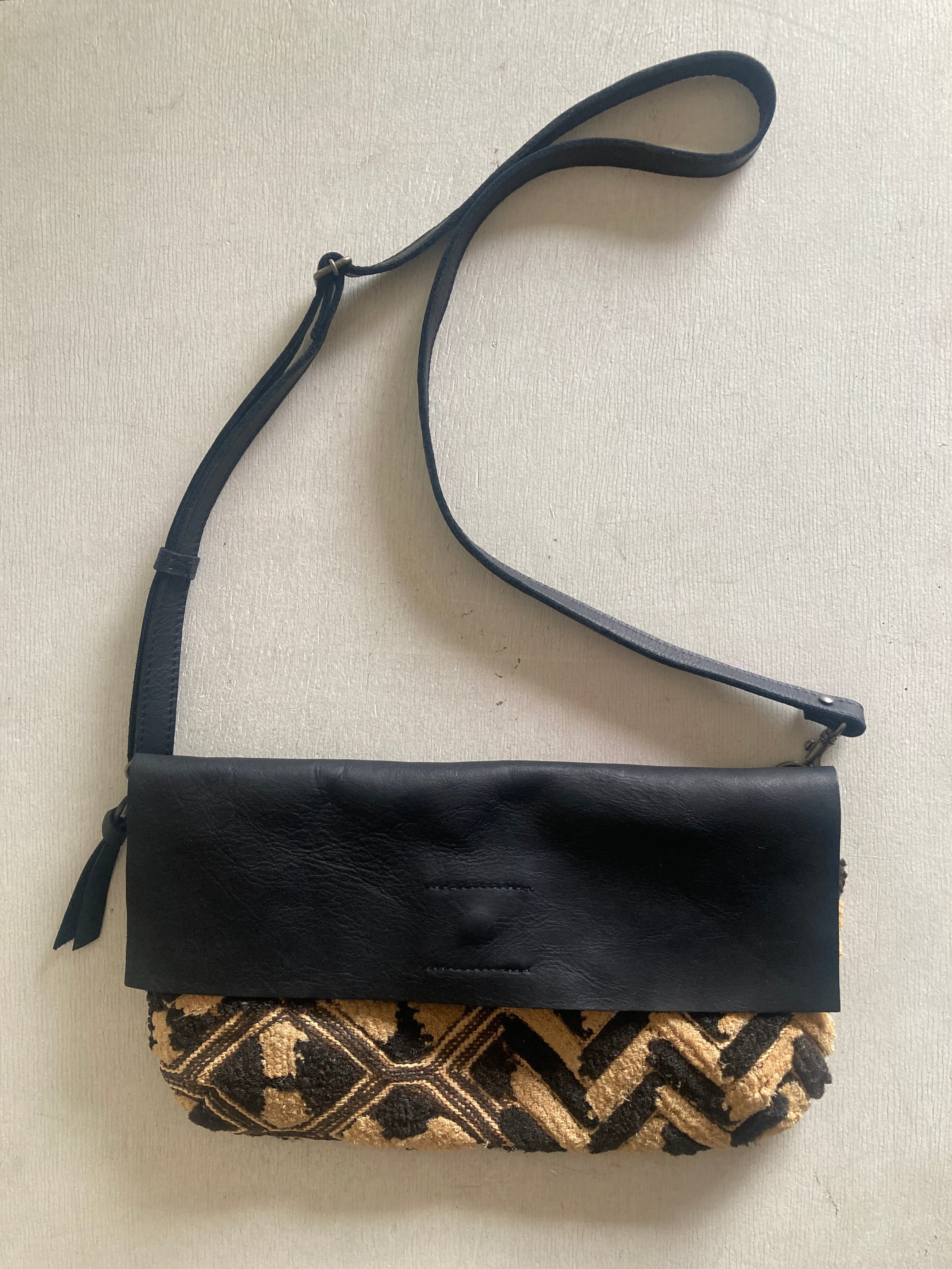 ヴィンテージの * 草ビロード を外ポケット兼装飾として取り入れたシンプルな2Wayフラップポシェット