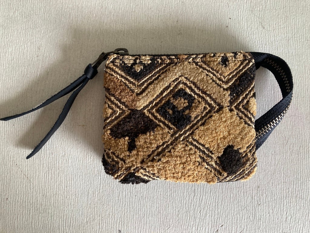 (パイル織の抽象画のような印象を受ける草ビロードを用いました。螺髪のような織り込み方が稀有なタイプです。見方は人それぞれ、しかしながら、作り手の民にしか分かりえぬ各家々に継承された全てが吉祥を願う柄なのだそう。)