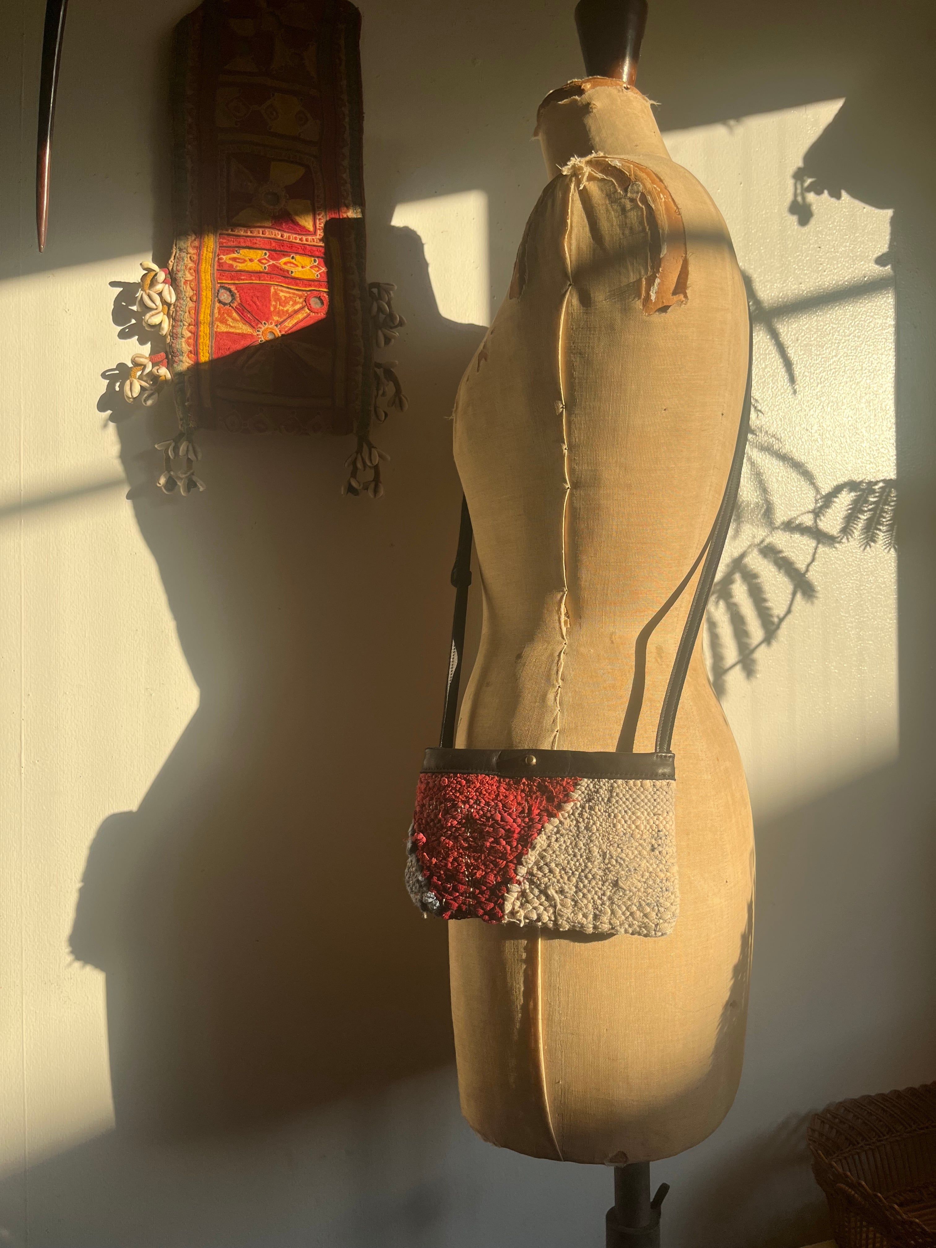 古布.verの背面側はレザーですので装いに併せて出す面を変えれば1つで2役もこなします。(鞄や靴と同様に、毎日同じものを用いますとその分消耗は早くなりますし、体に触れることで古布は摩擦による擦れが生じます。ご自身の装いやライフスタイルを思い浮かべながら、じっくりご検討いただけますと幸いです。)