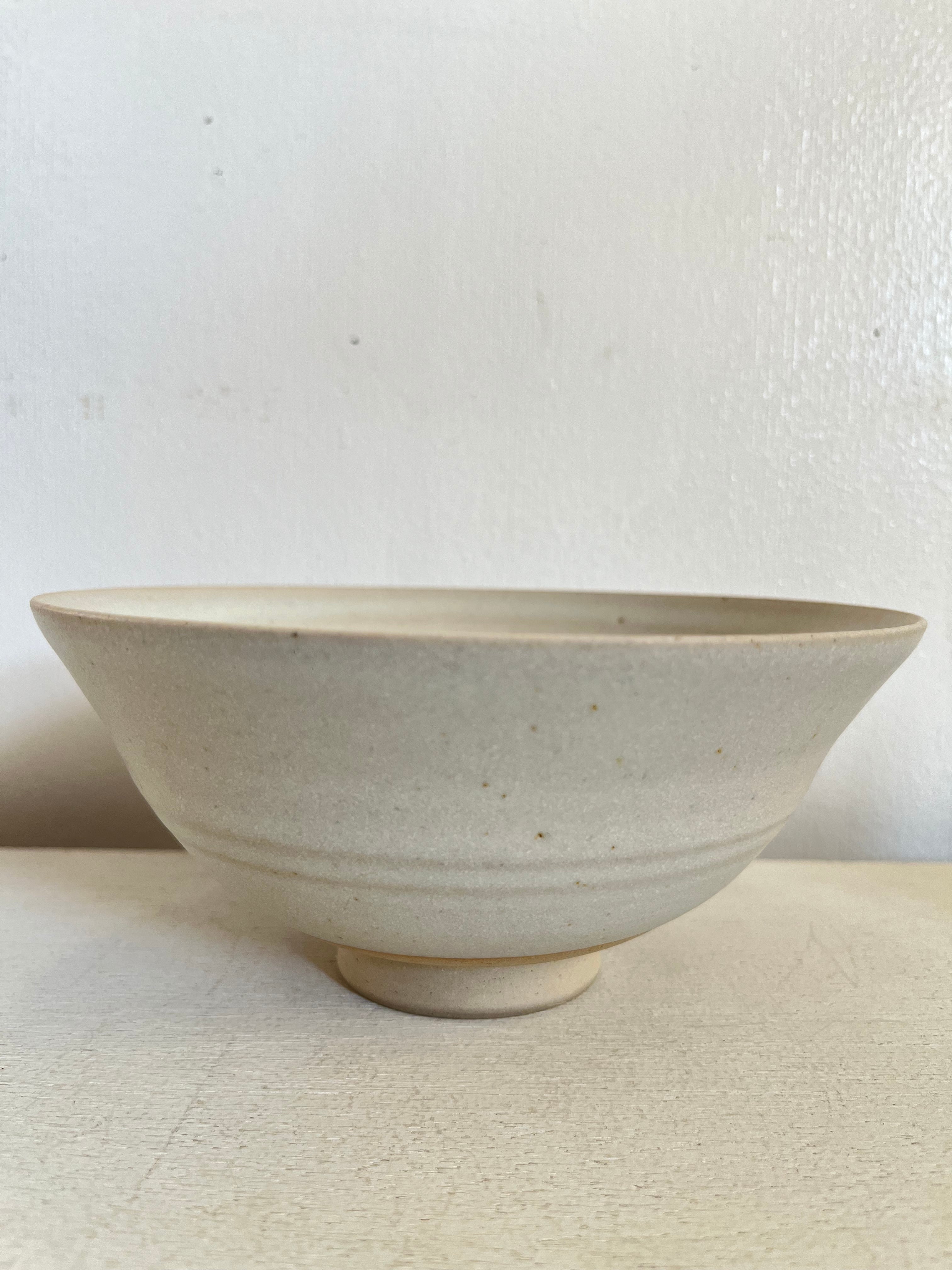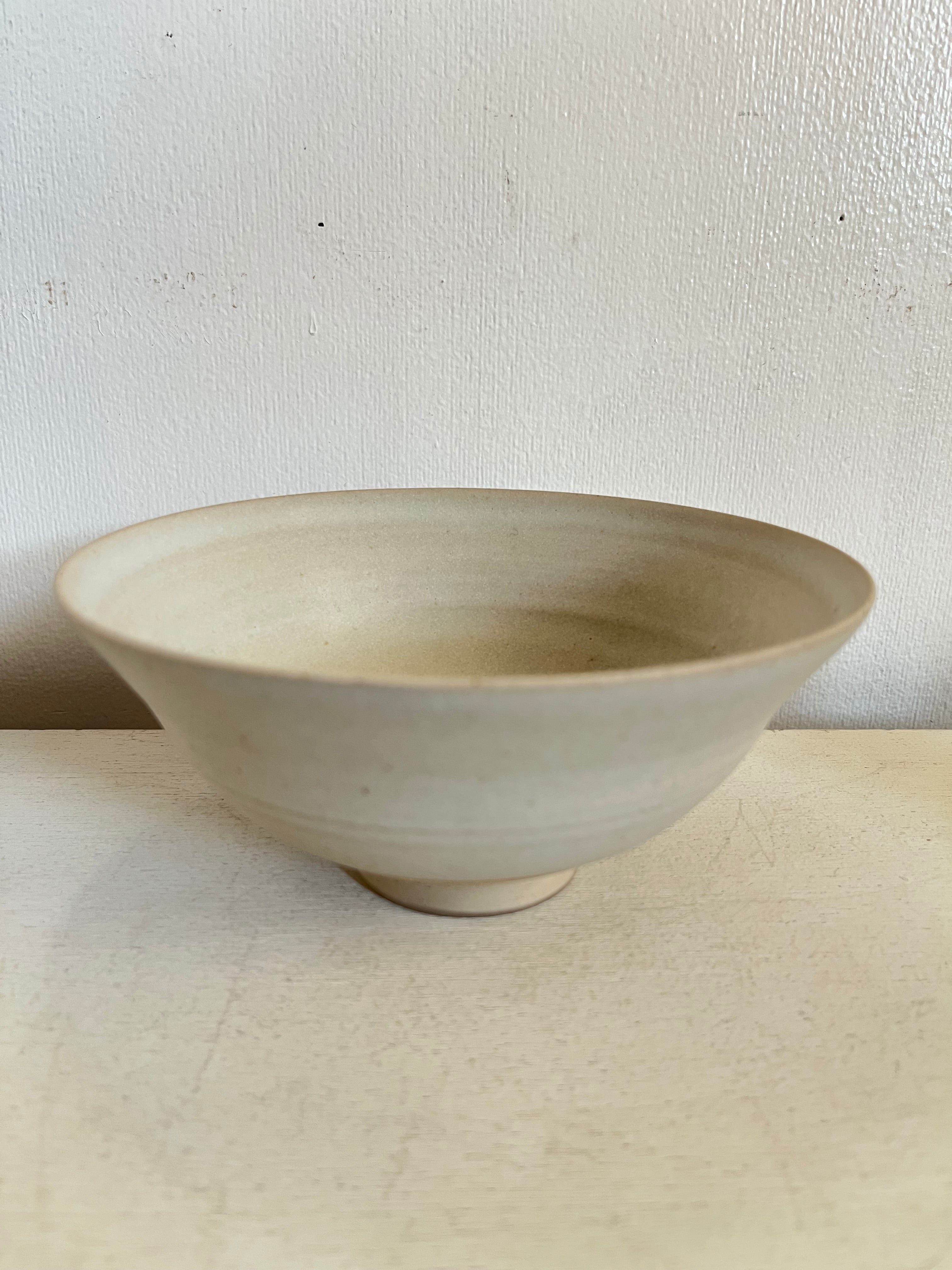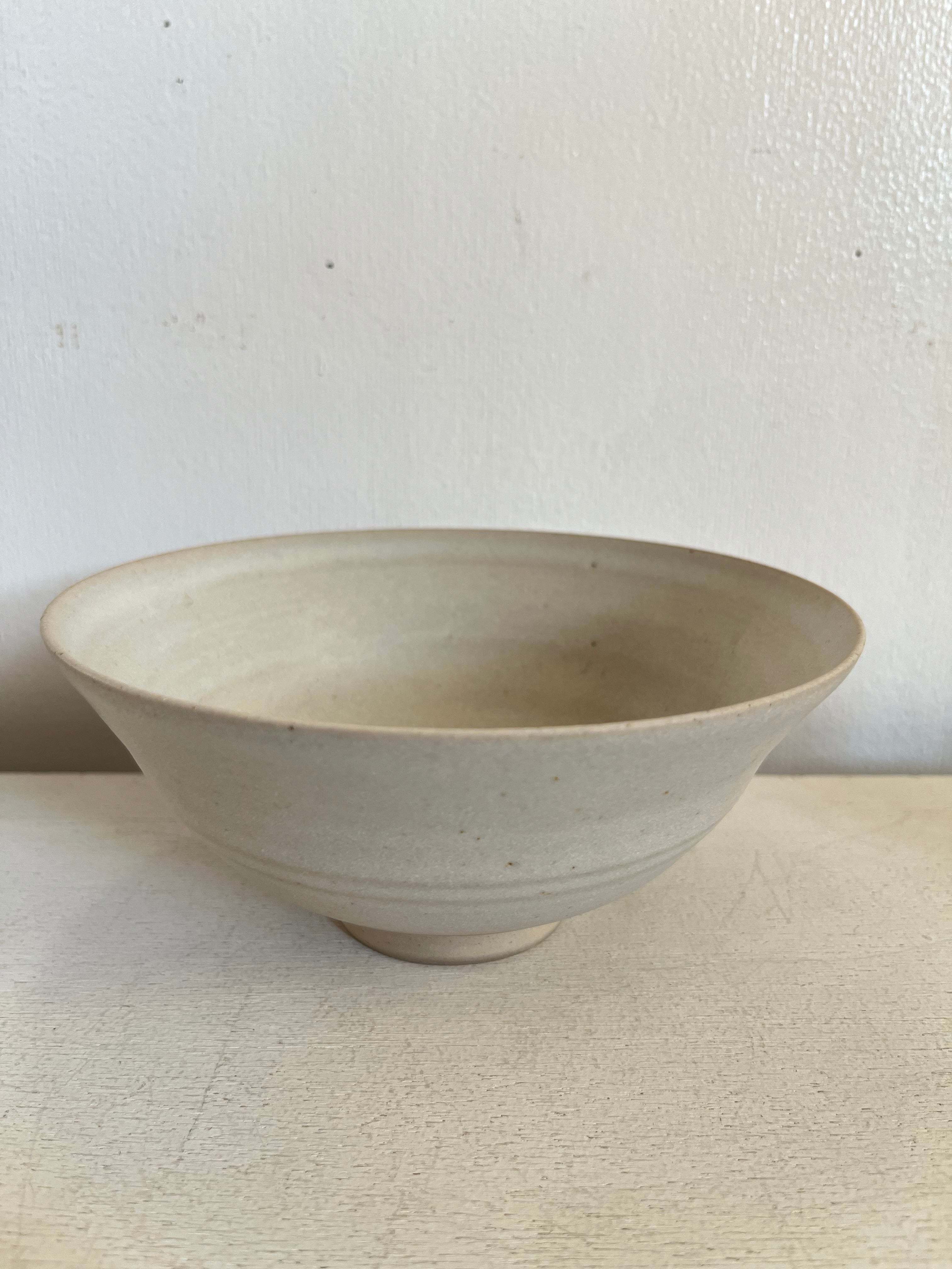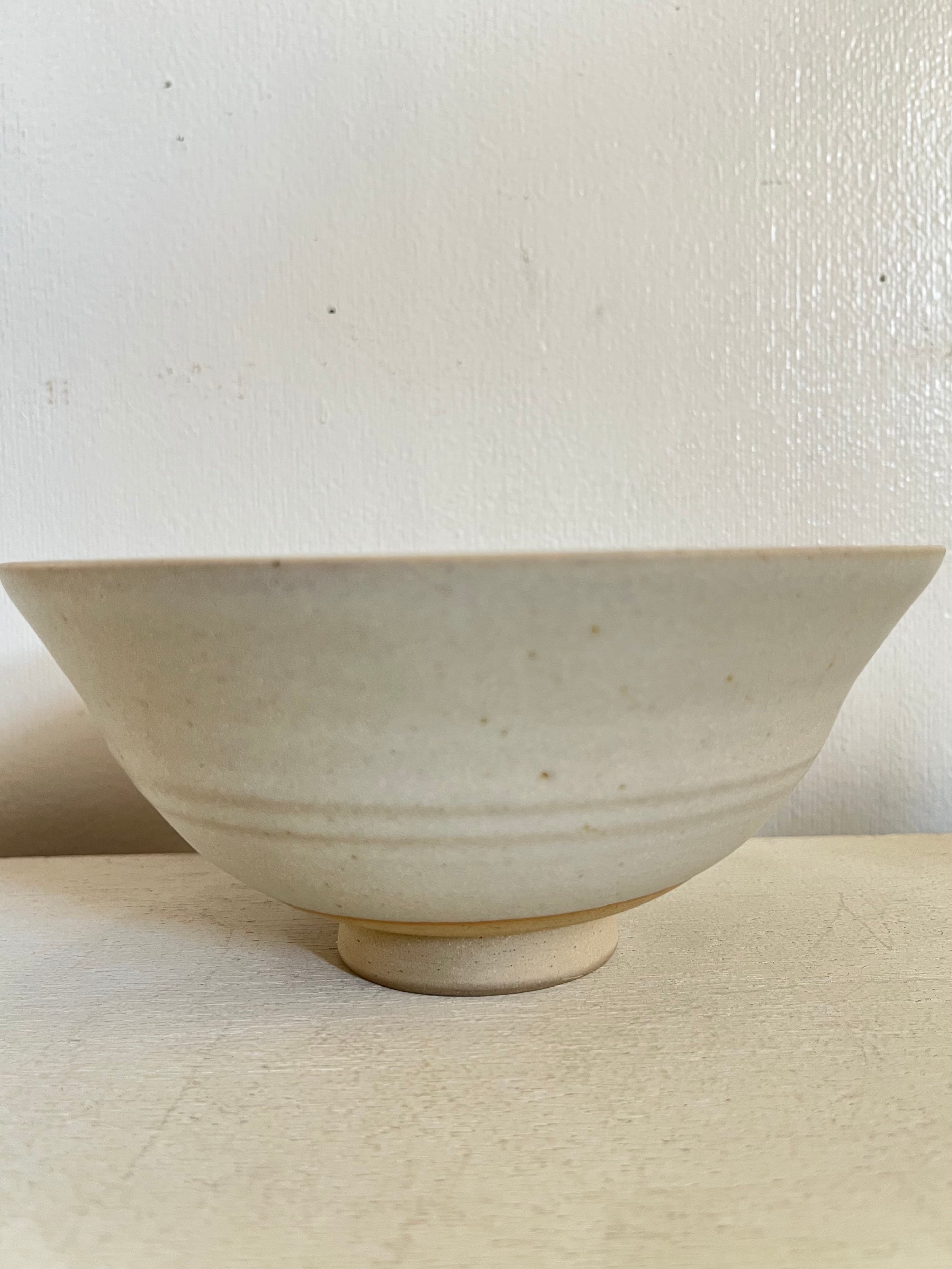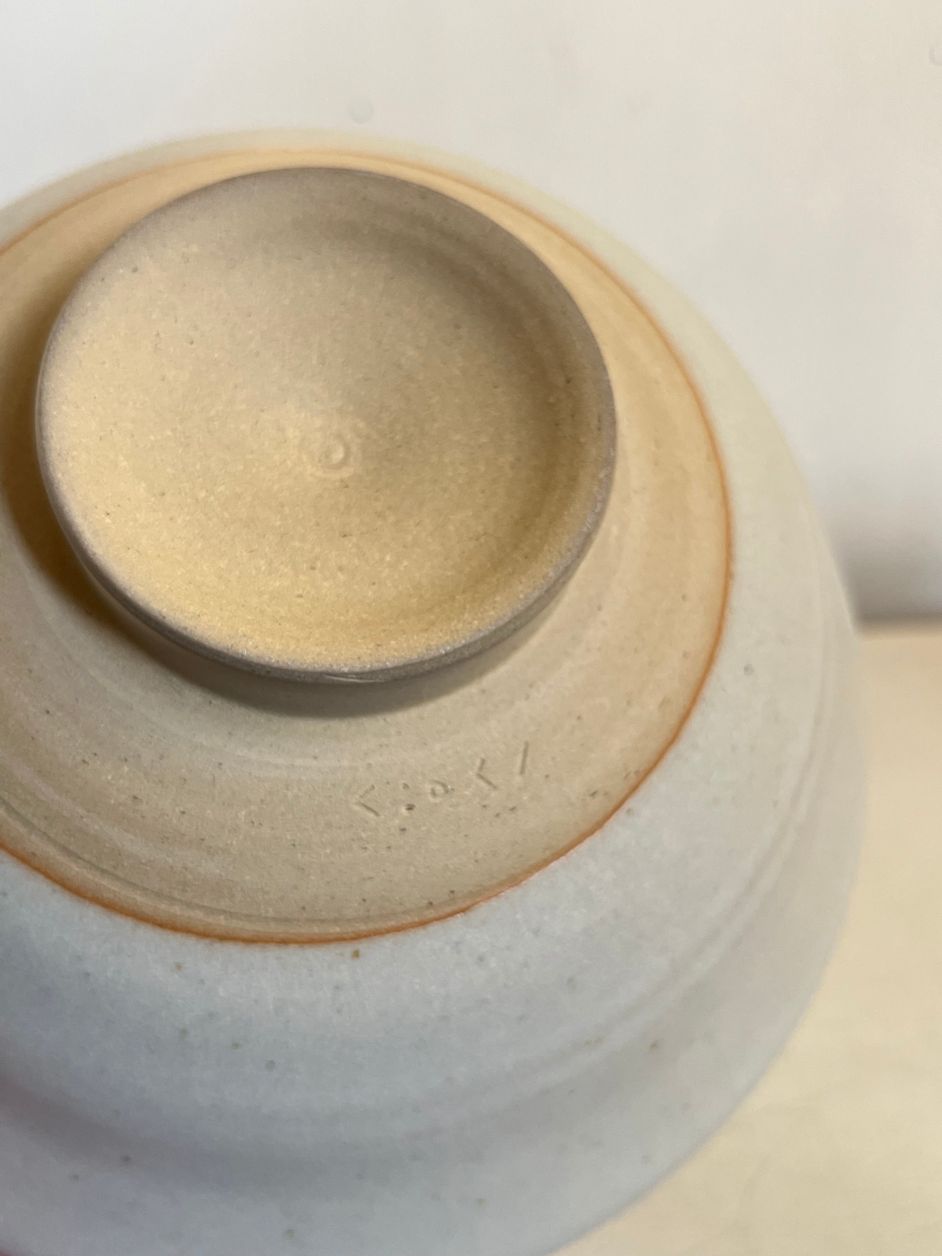 釉薬:生成り系/口元の釉溜まりと胴部のロクロ目(2本線)が作品の景色となっています