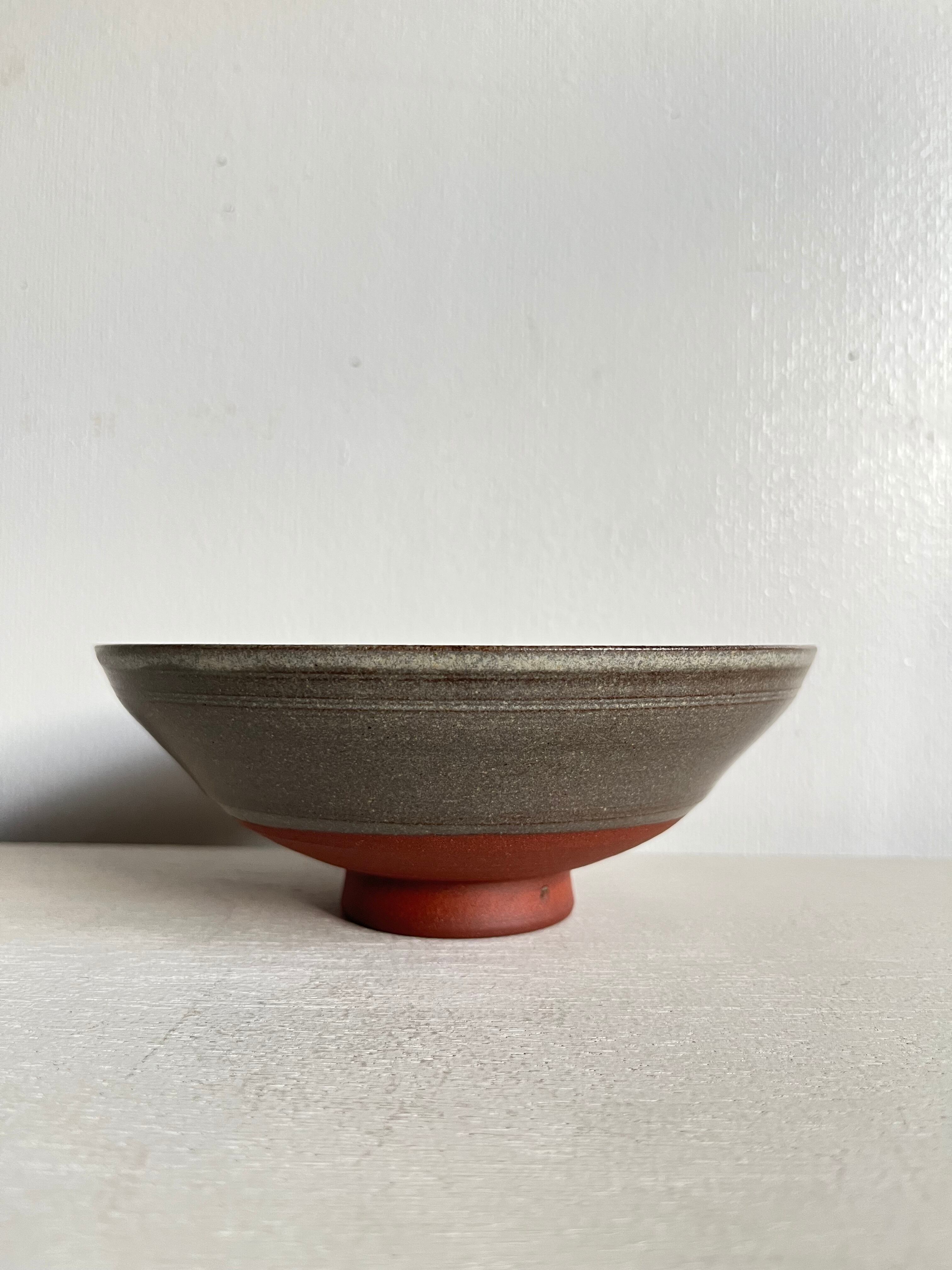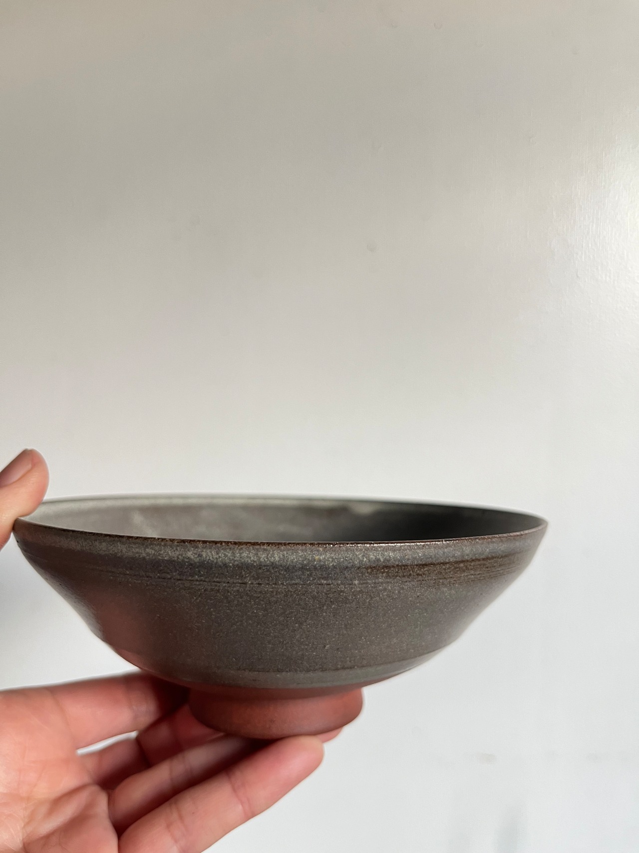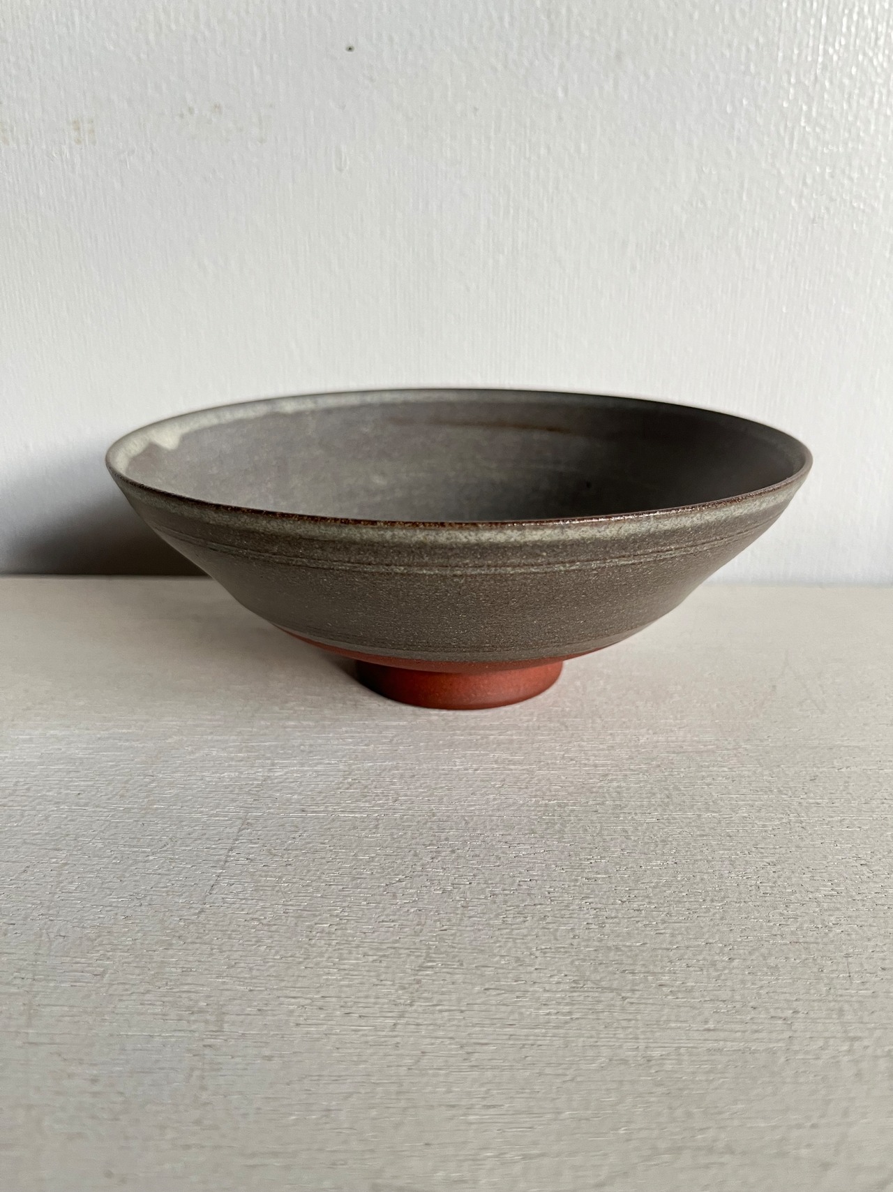 釉薬:グレージュ系/口元の釉溜まりとロクロ目が作品の景色となっています