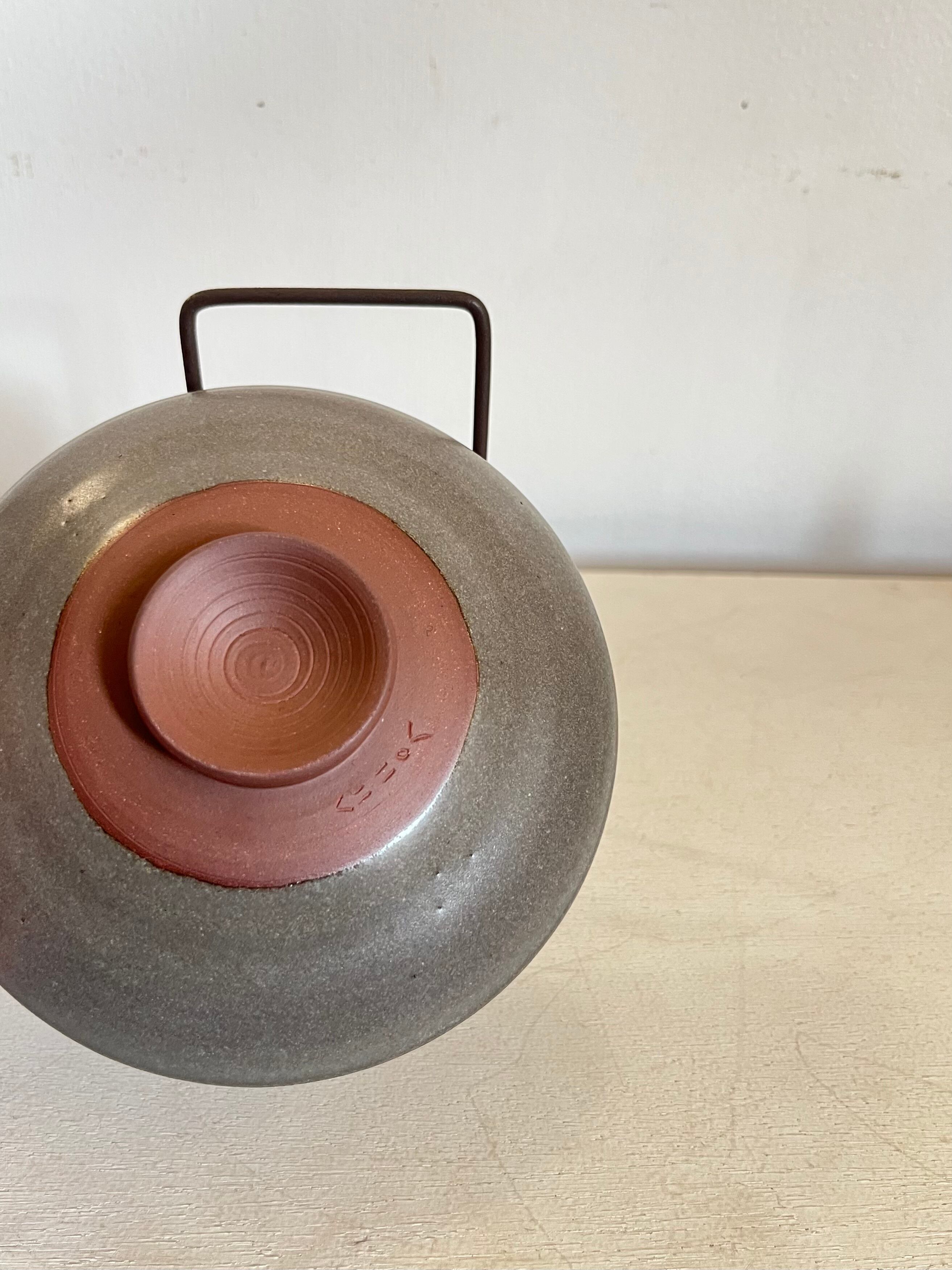 釉薬:グレージュ系/口元の釉溜まりと窯変が作品の景色となっています