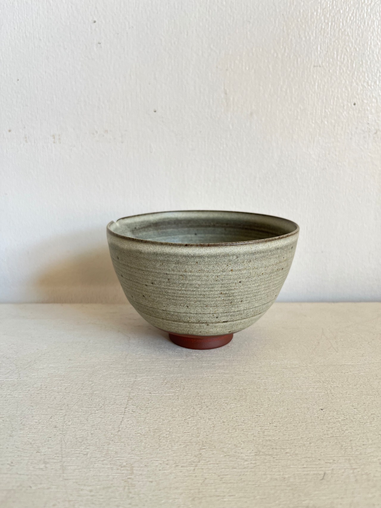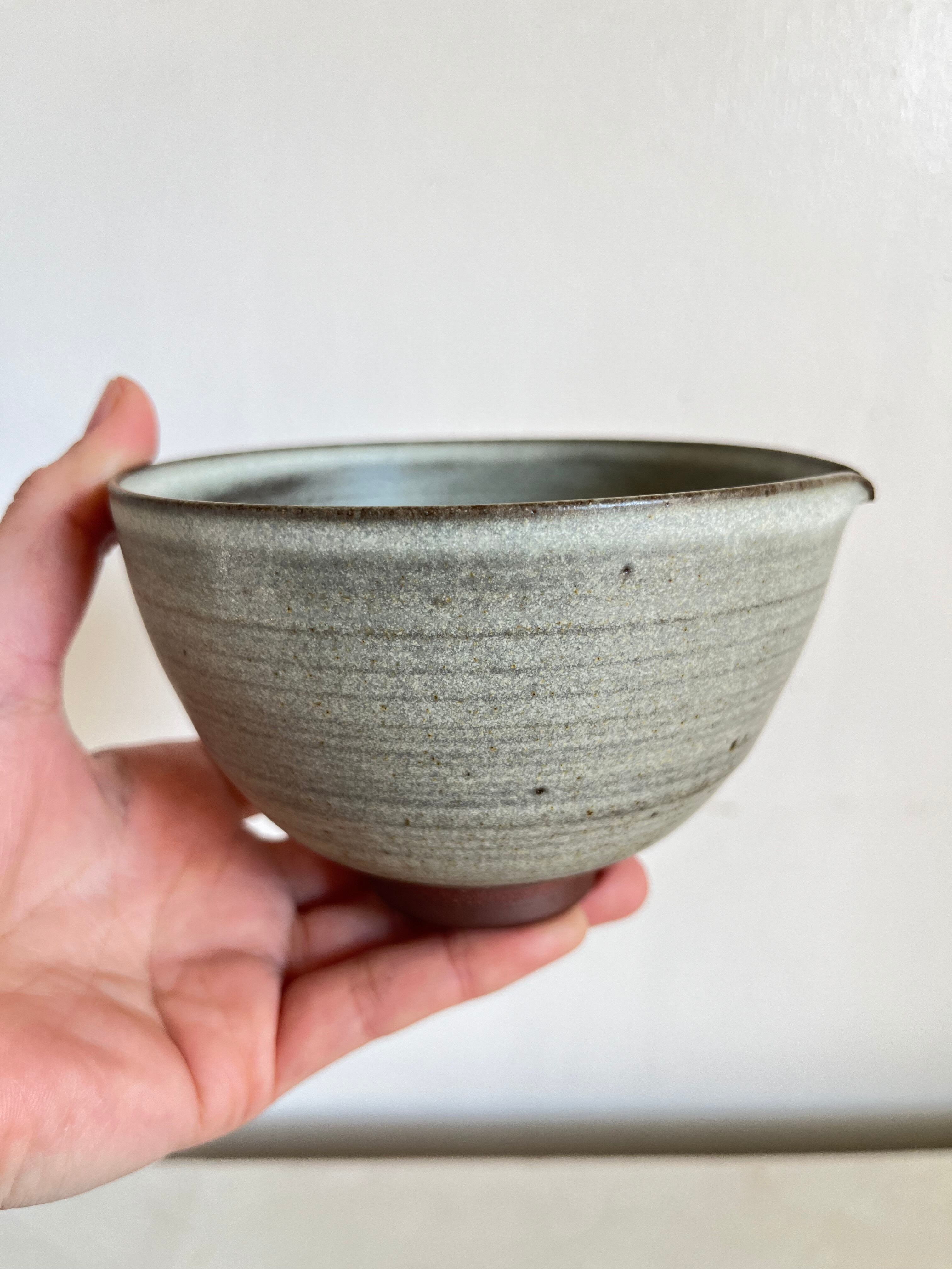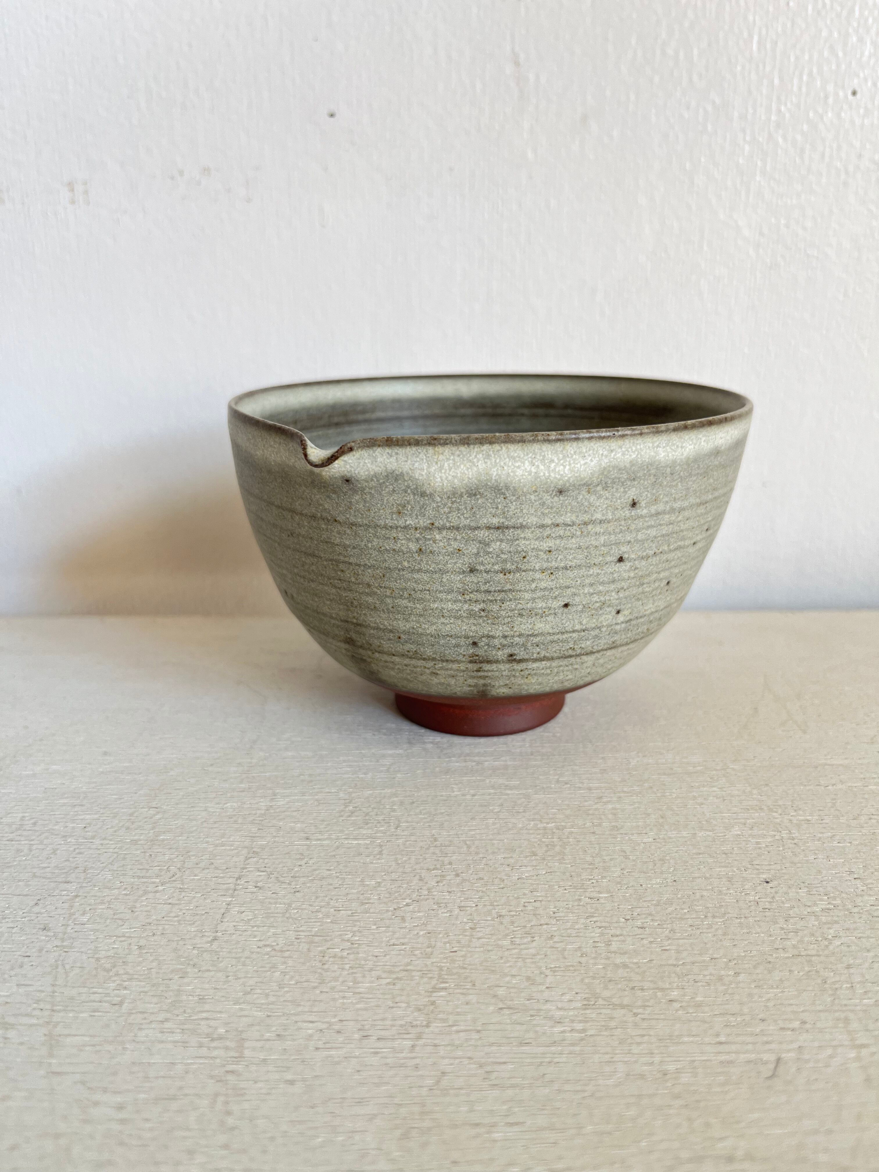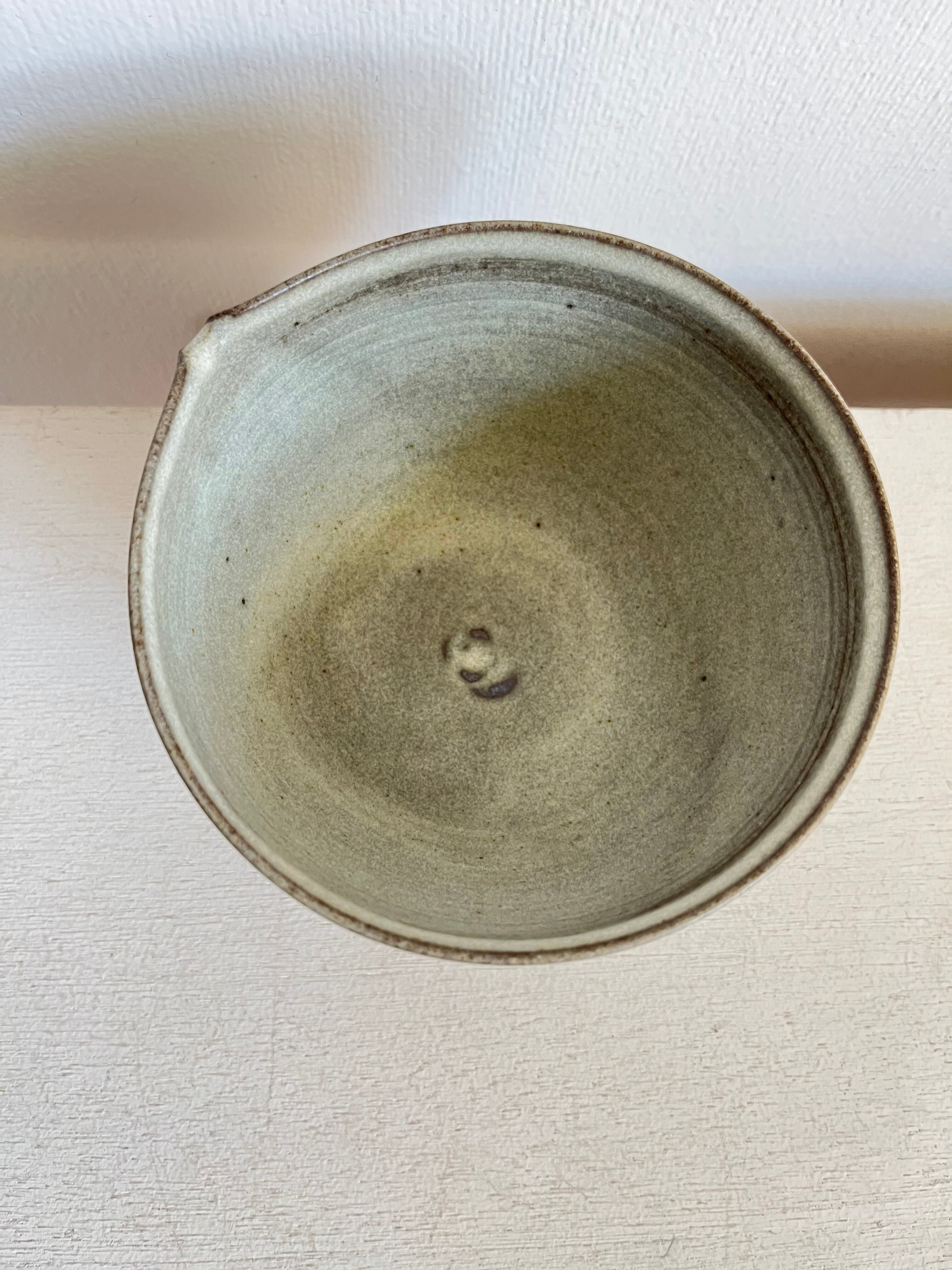 釉薬:グレージュ系/縁の釉溜まりのラインとロクロ目が作品の景色となっています