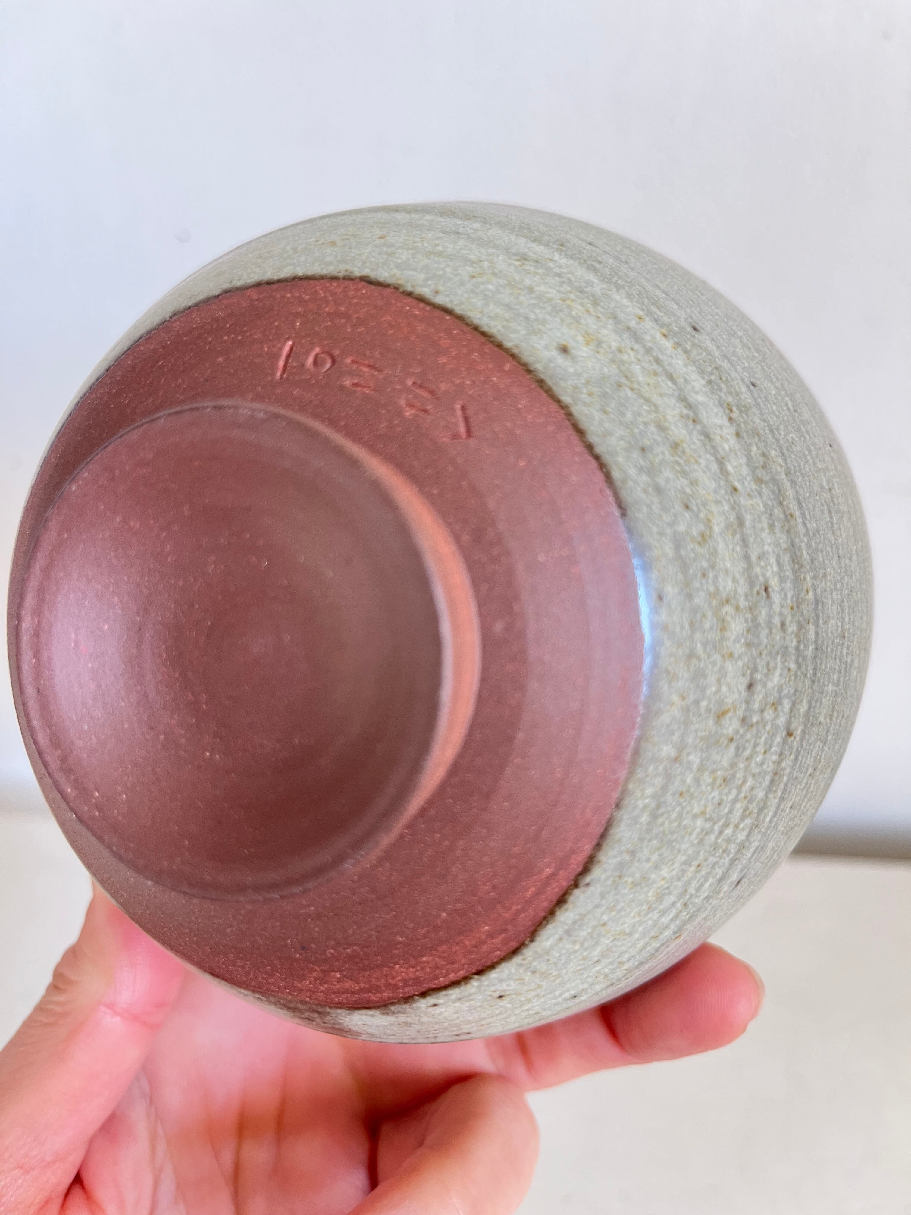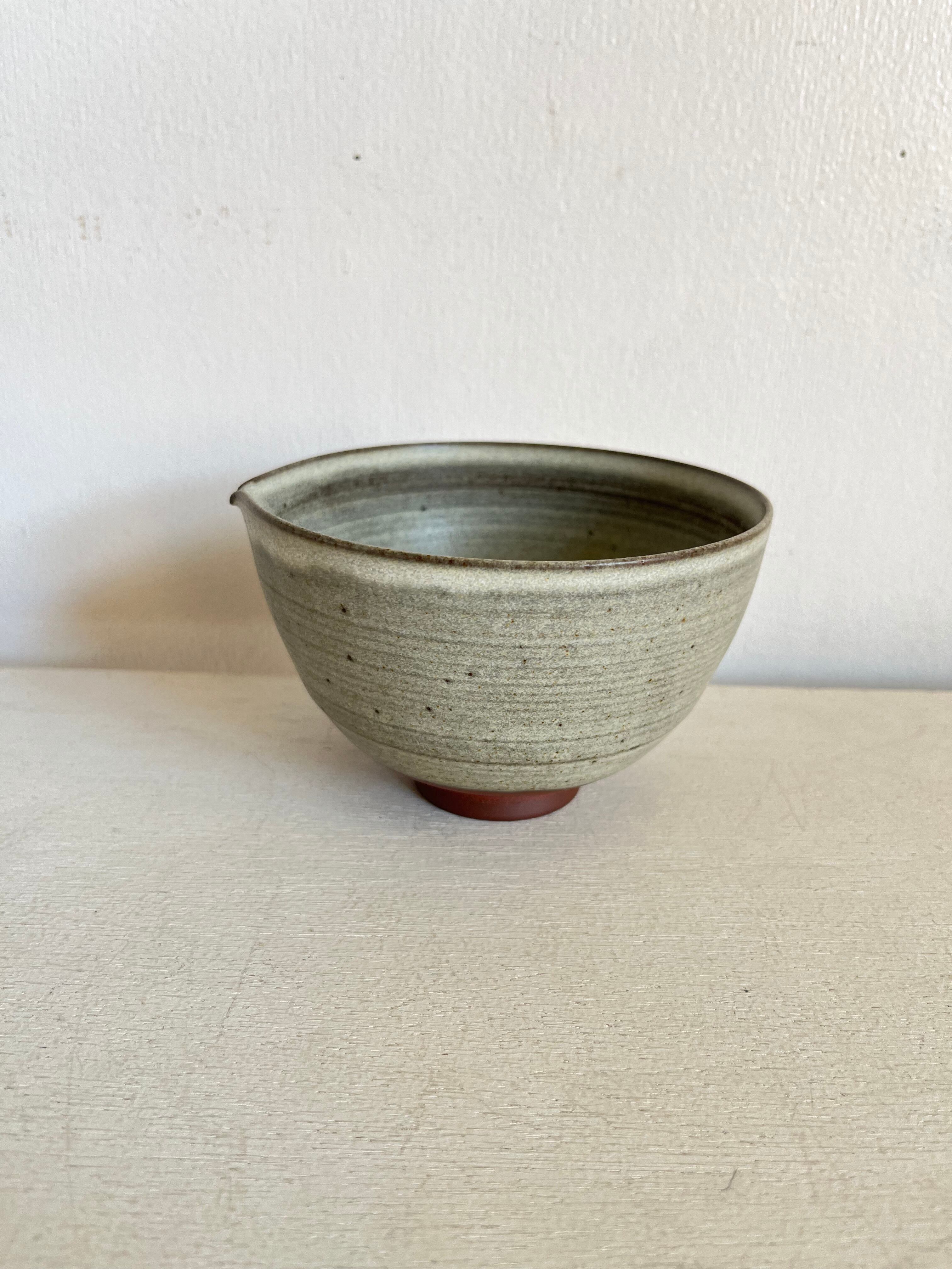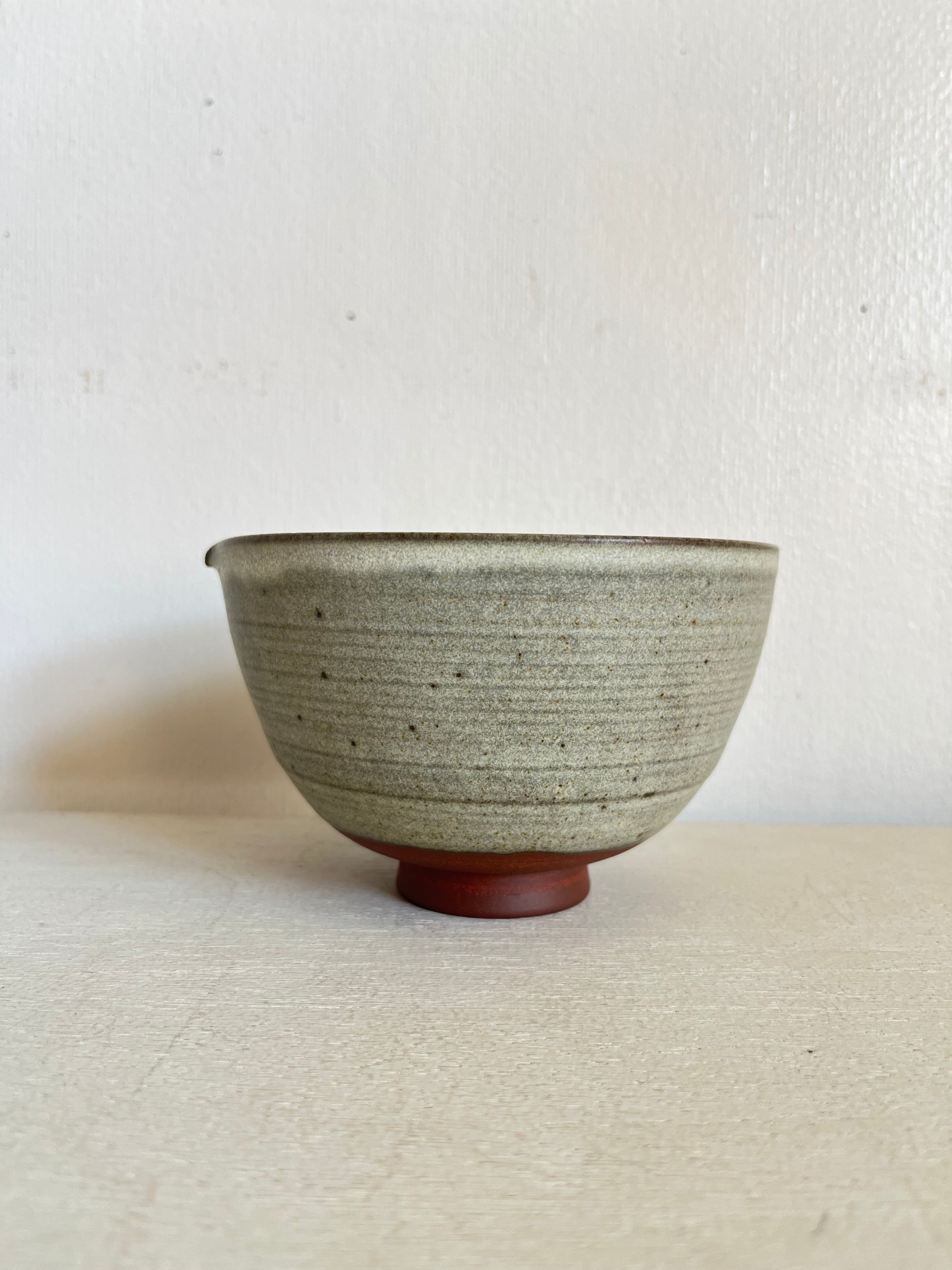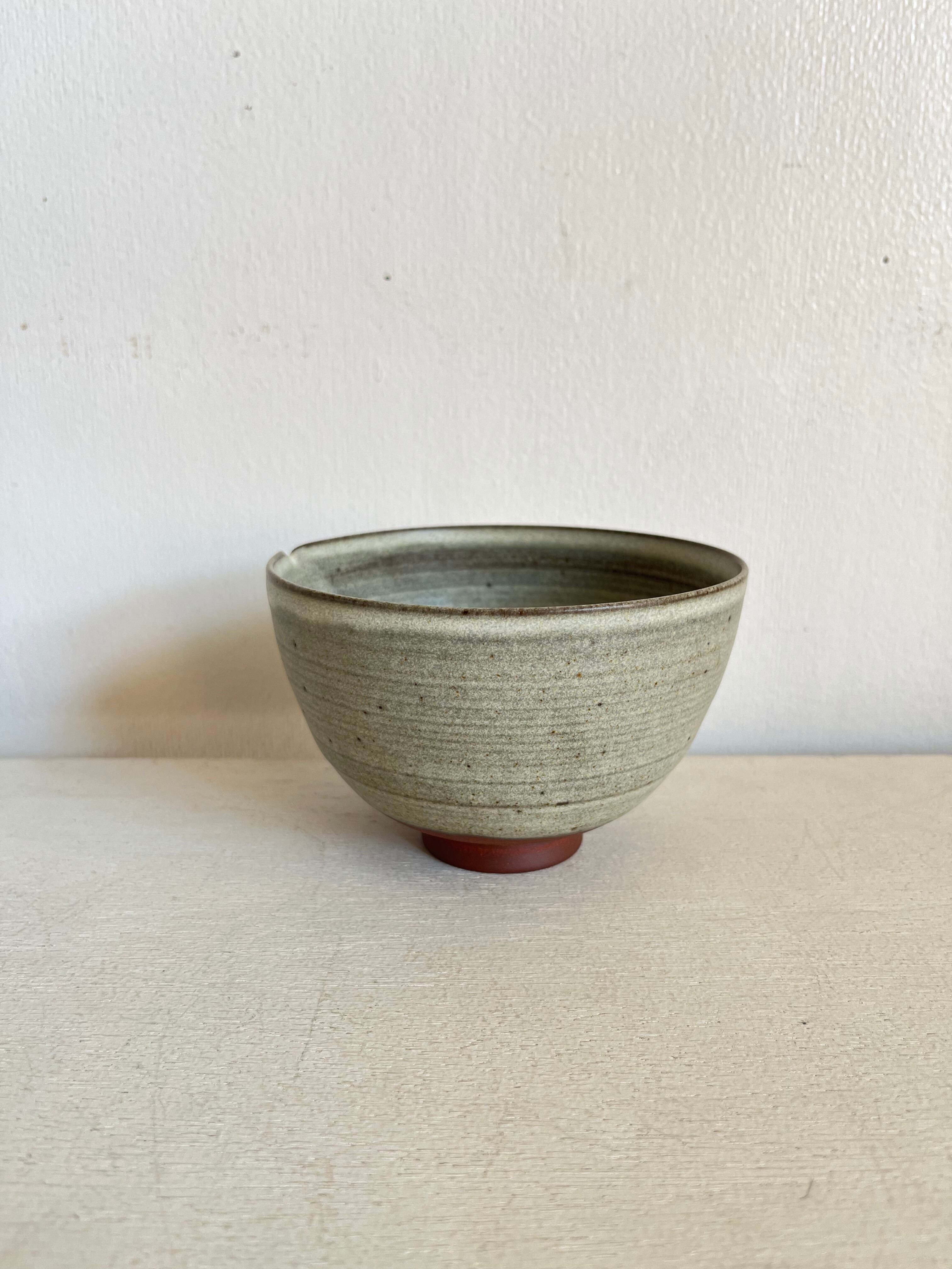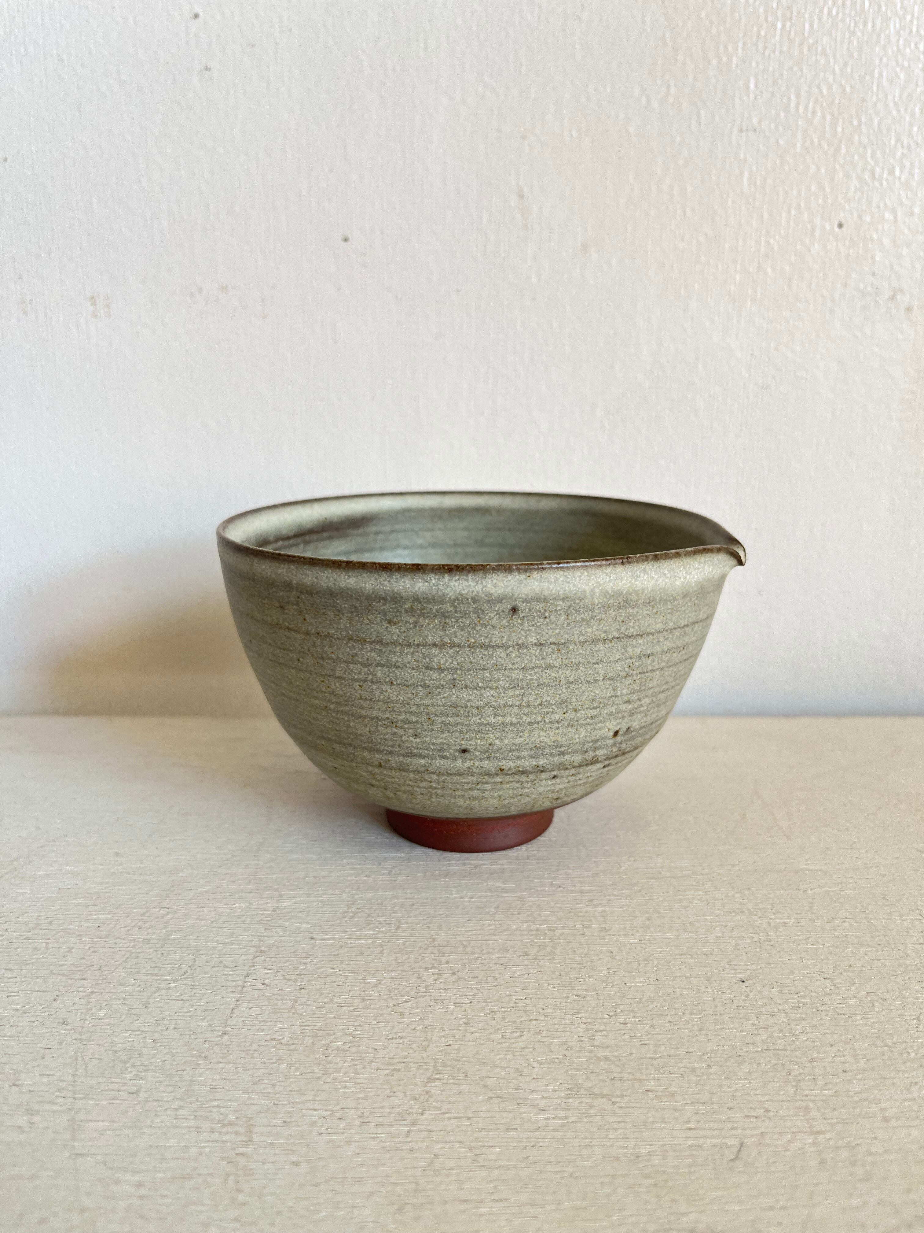 釉薬:グレージュ系/縁の釉溜まりのラインとロクロ目が作品の景色となっています