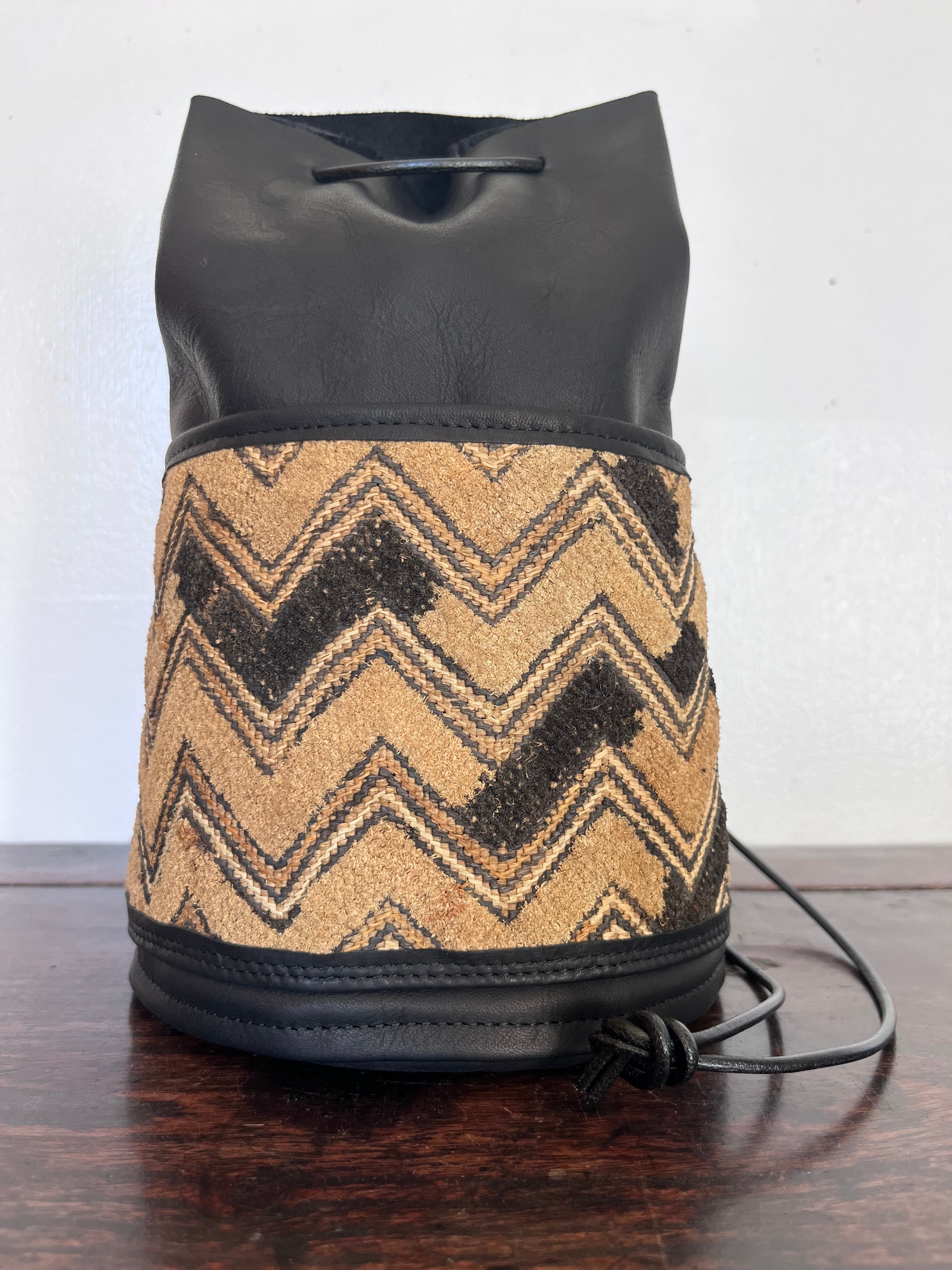 バッグの個性となる染織裂のトリミングはもとより