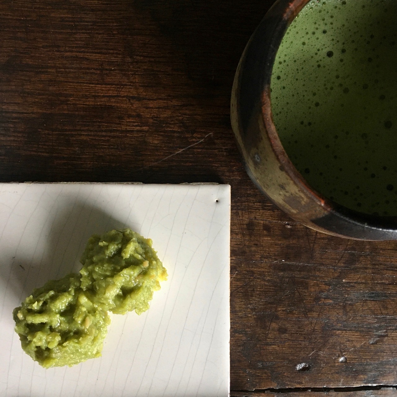 貫入が秋雨と重なるデルフトタイル