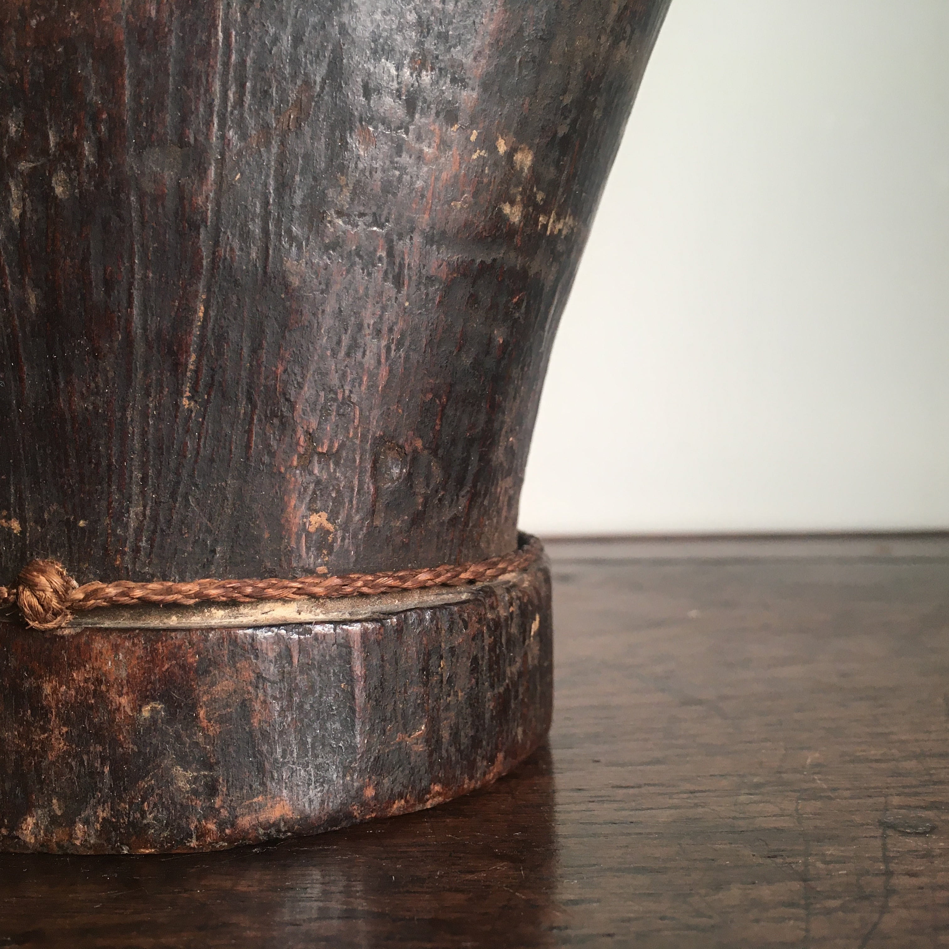 樹皮を細く編み込んだ1.5mmほどのオリジナルと見られる紐がぐるり。