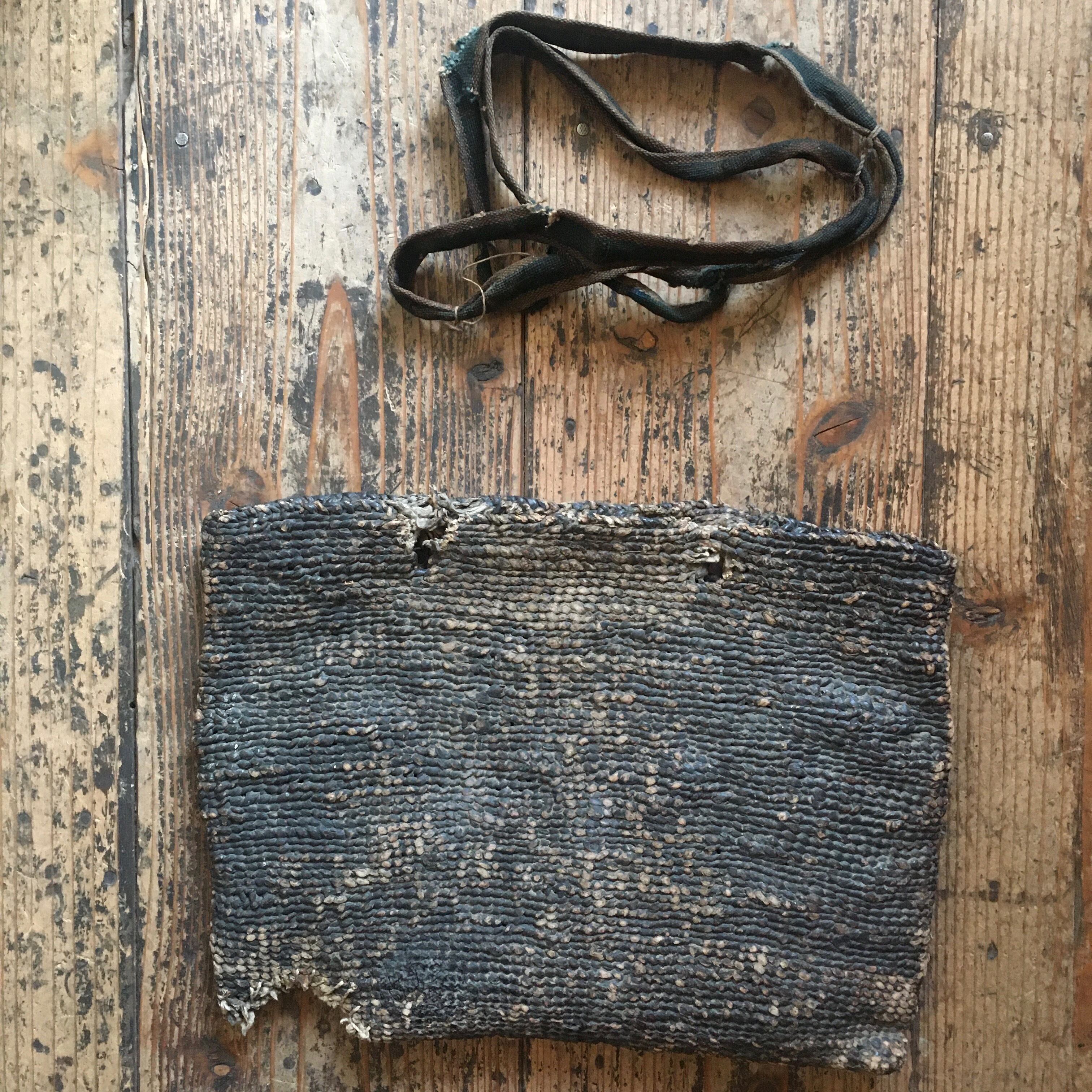 (提げ紐もかじられており、千切れそうですので外して有ります、幅2cm袋織、緯糸が双糸です。)