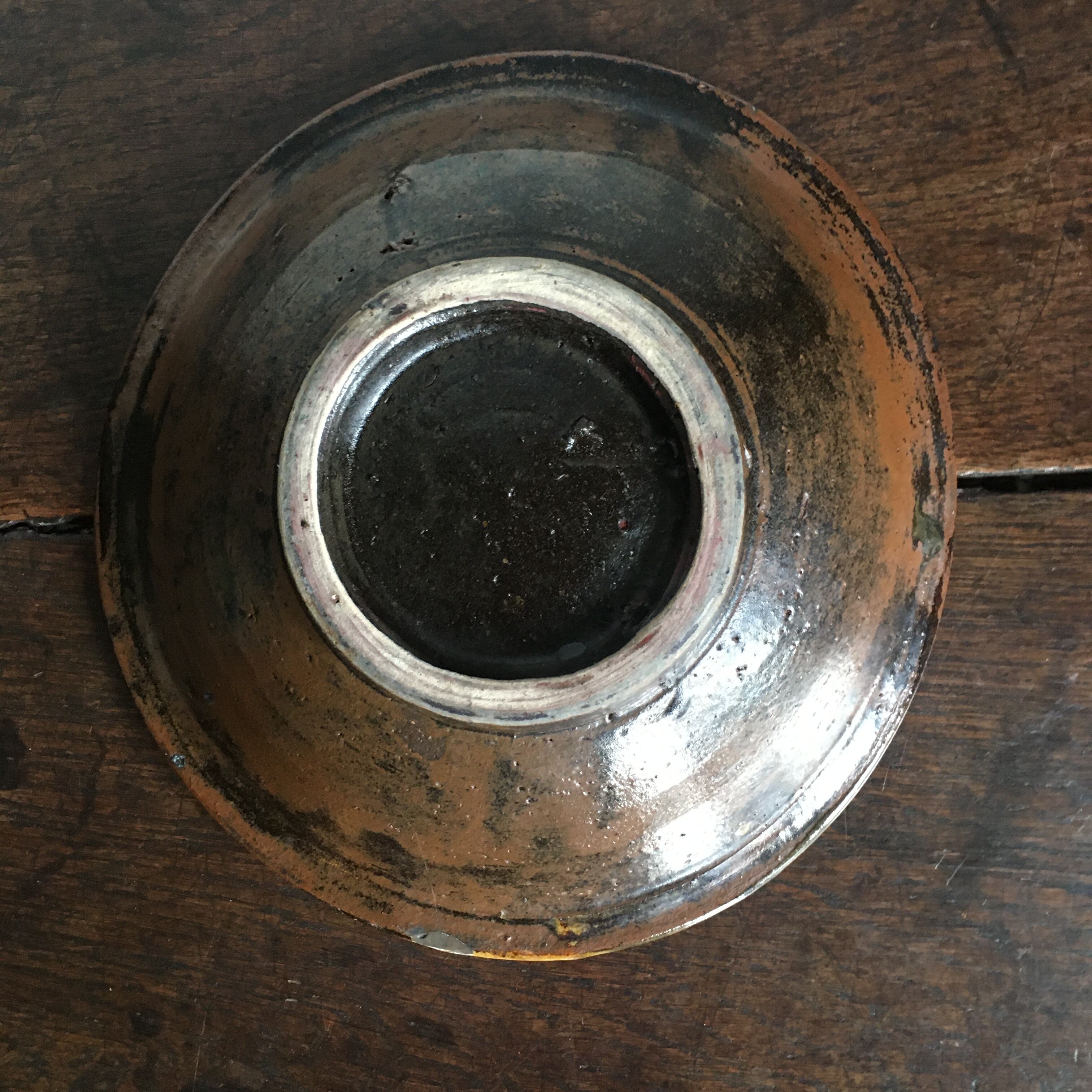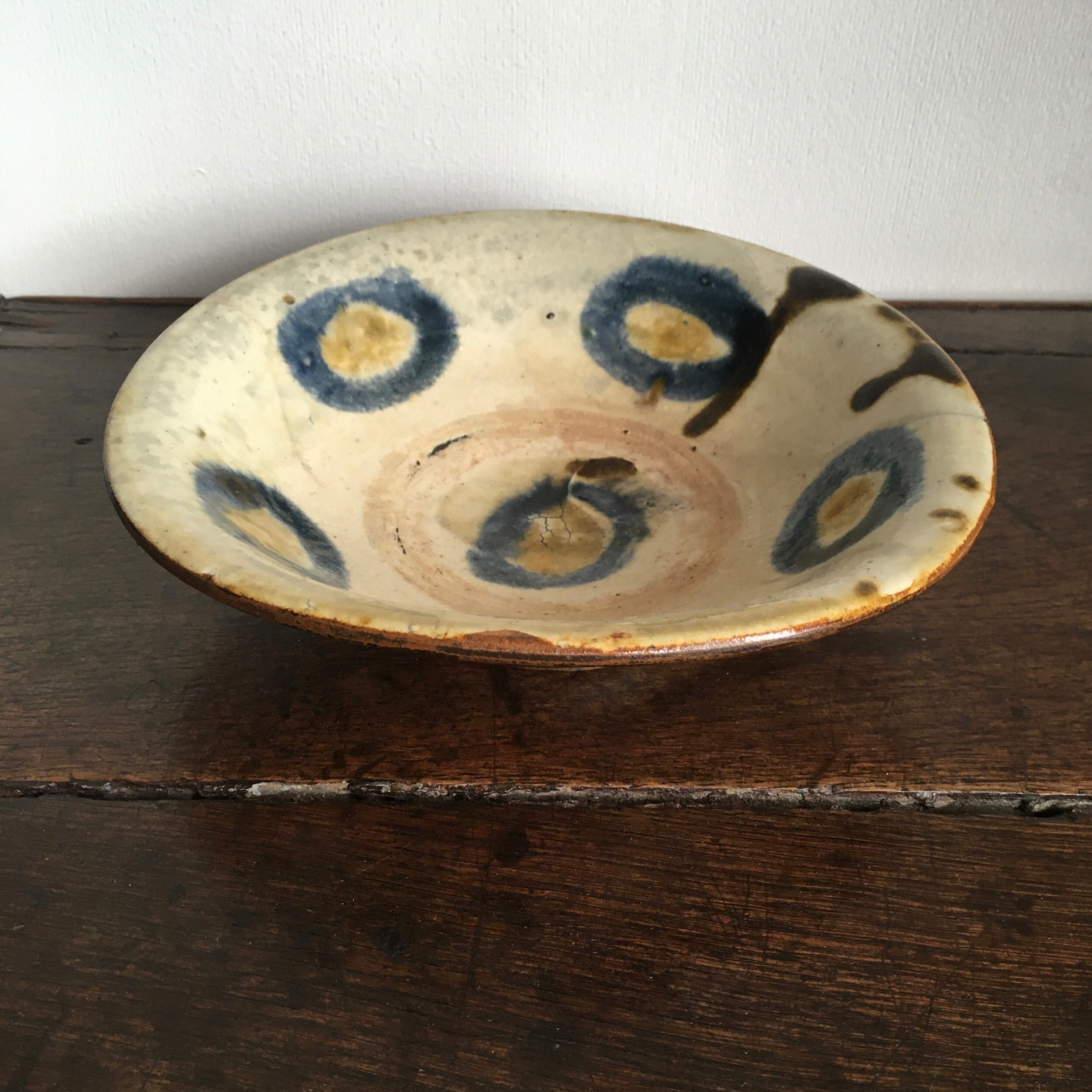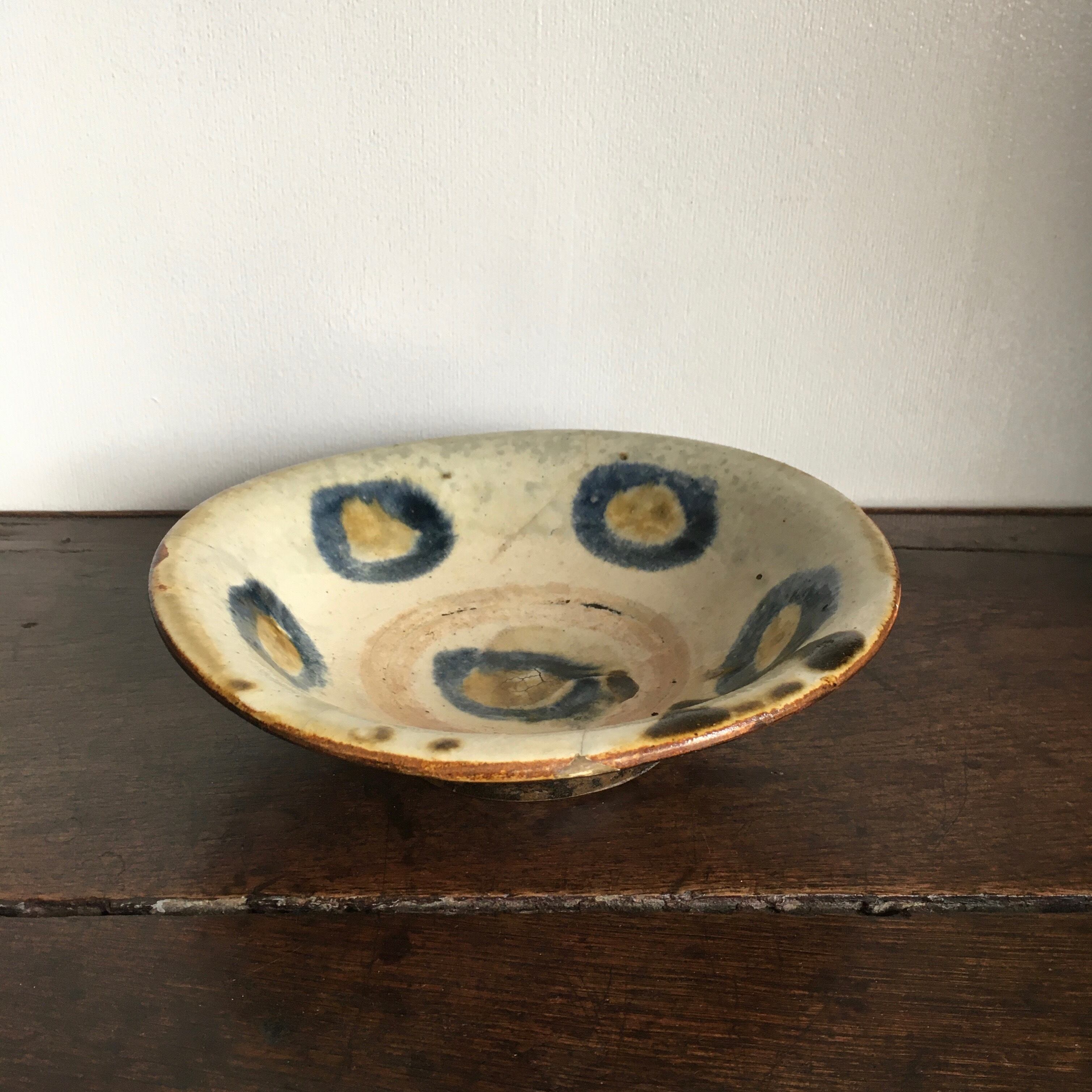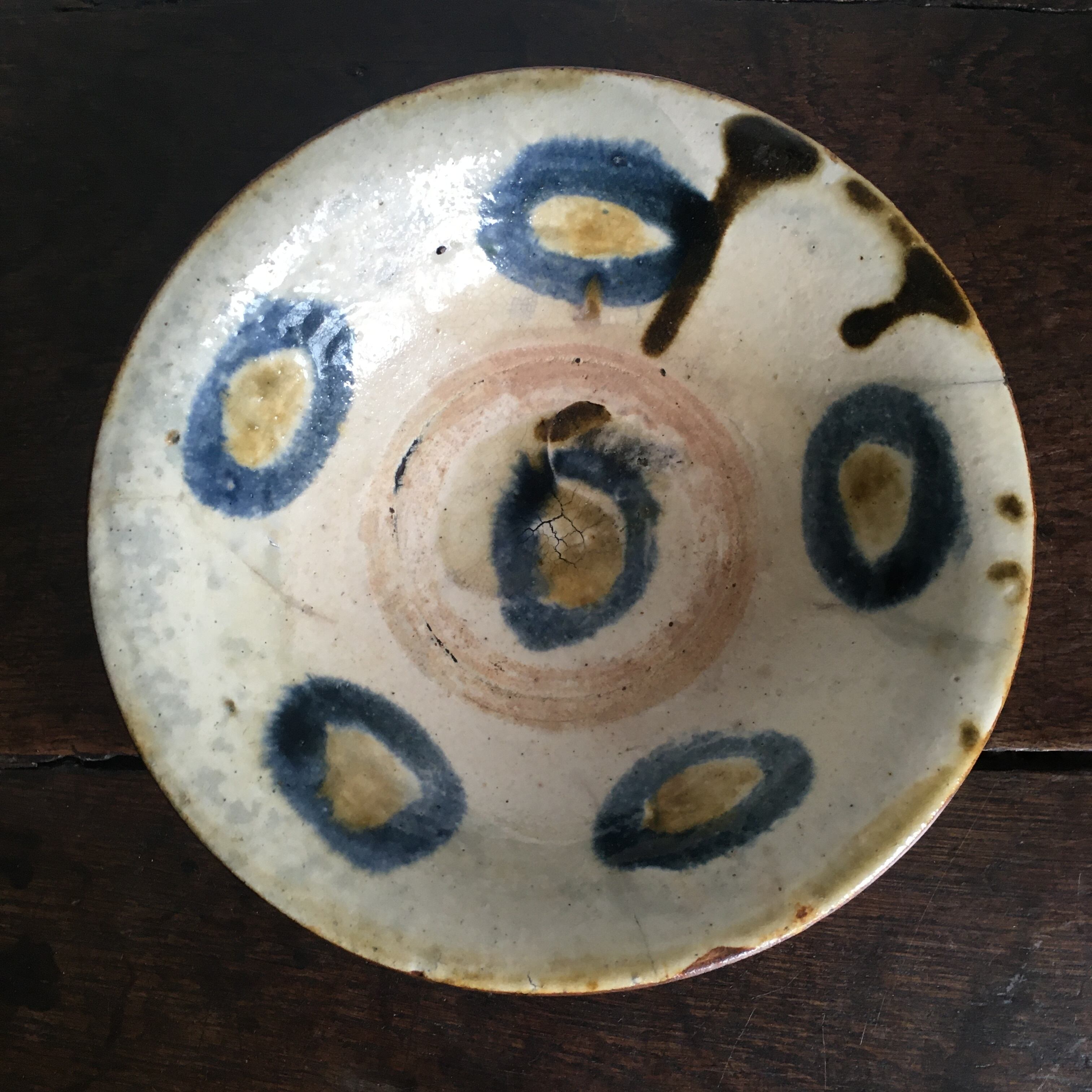 手取りはずっしりと重く、山呉須と飴釉で描かれたその先の絞り染めのような丸でデフォルメされた花紋。