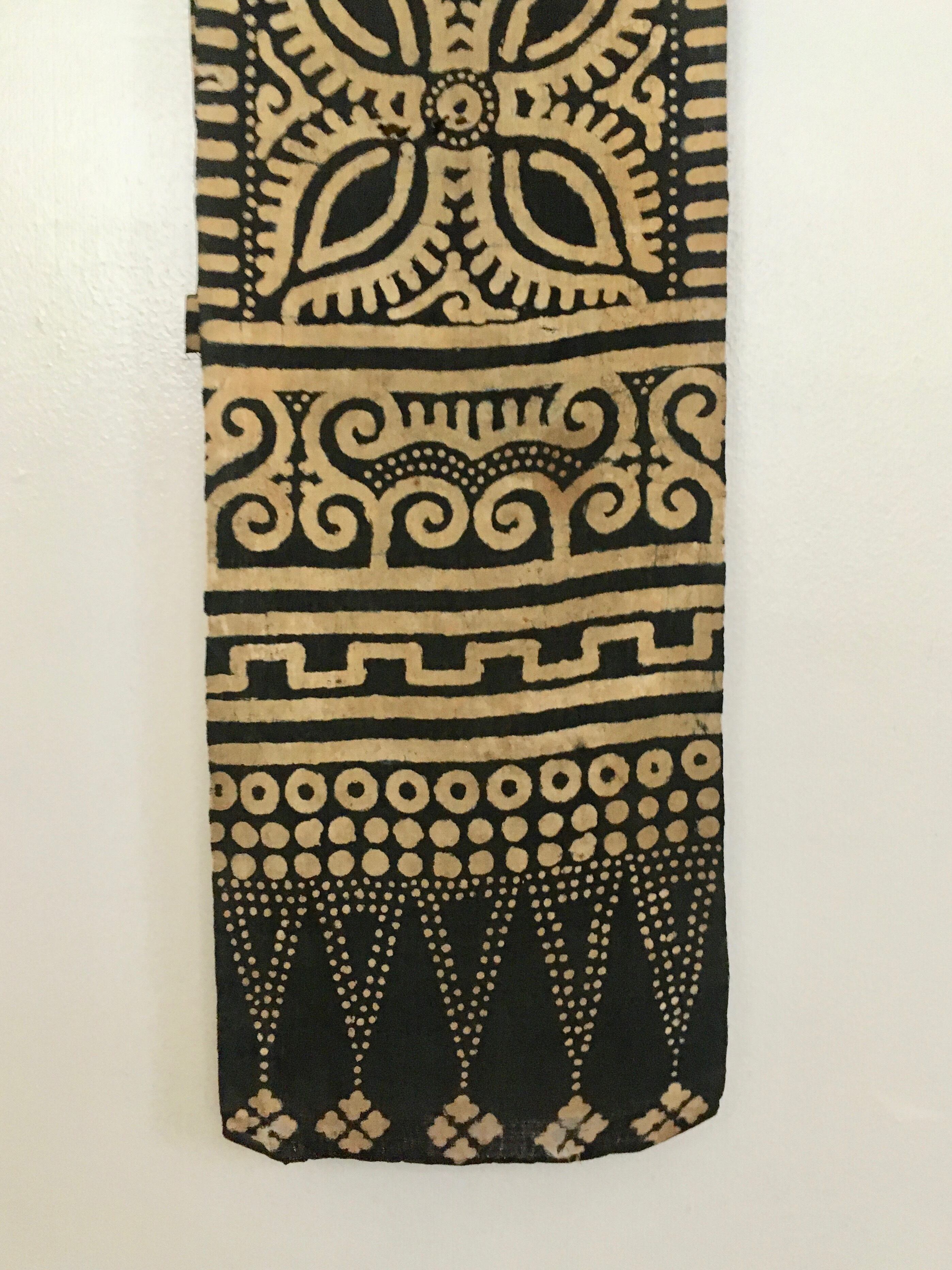 こちらはスラウェシ島南部の高山地帯で19c末にオランダに植民地支配されキリスト教の洗礼を受ける迄、土着のアニミズム信仰に基づき暮らしたトラジャ族の神聖な布 "サリタ" と呼ばれる儀礼布。