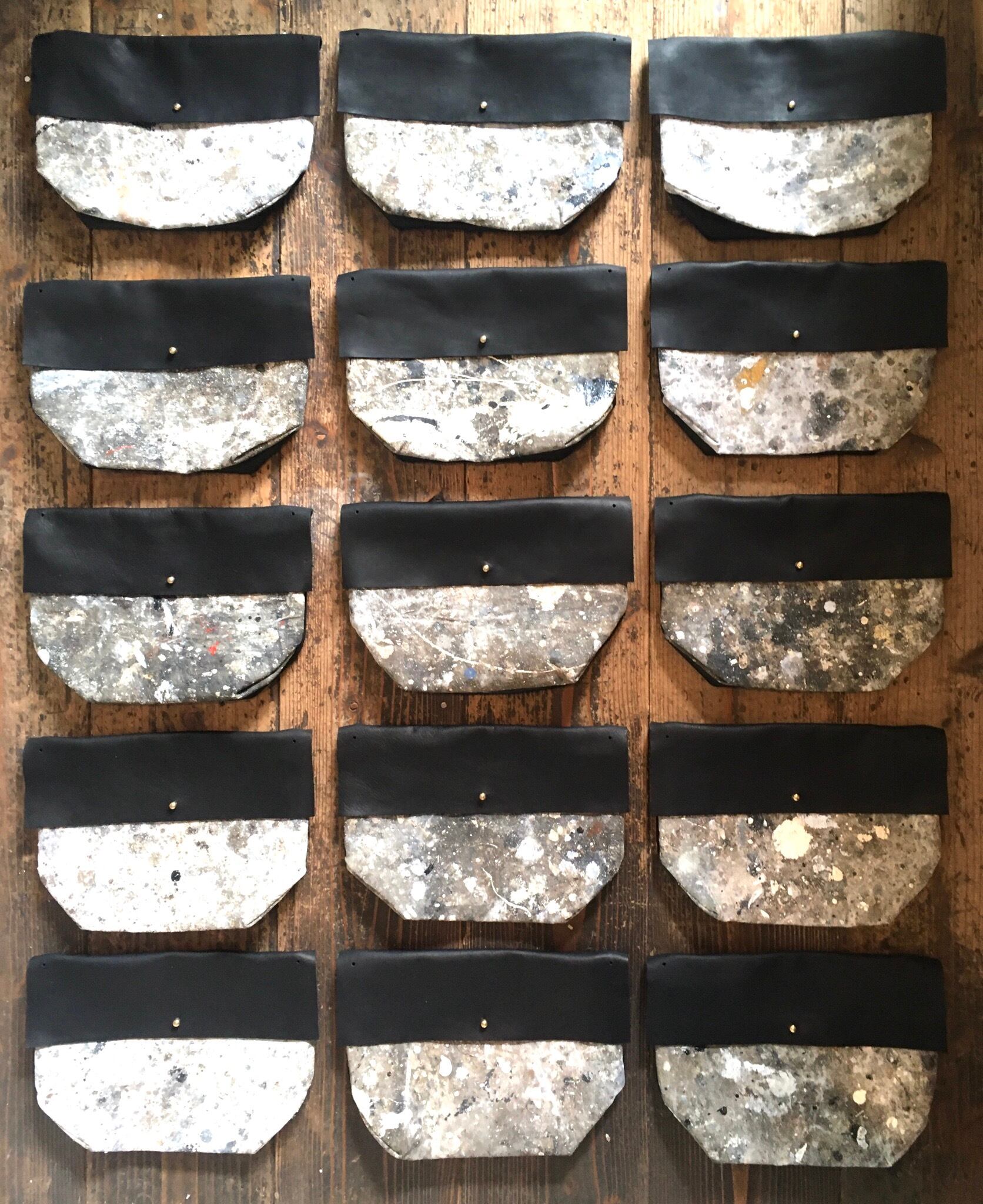 ○ アブストラクトなペンキ跡が残る 働き布(塗装職人の養生シート)を、