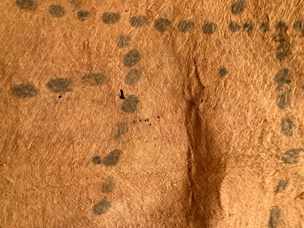 * 不織繊維の タパ の特徴でも有りますが、叩く工程で一部生地が薄くなっている箇所がございます。