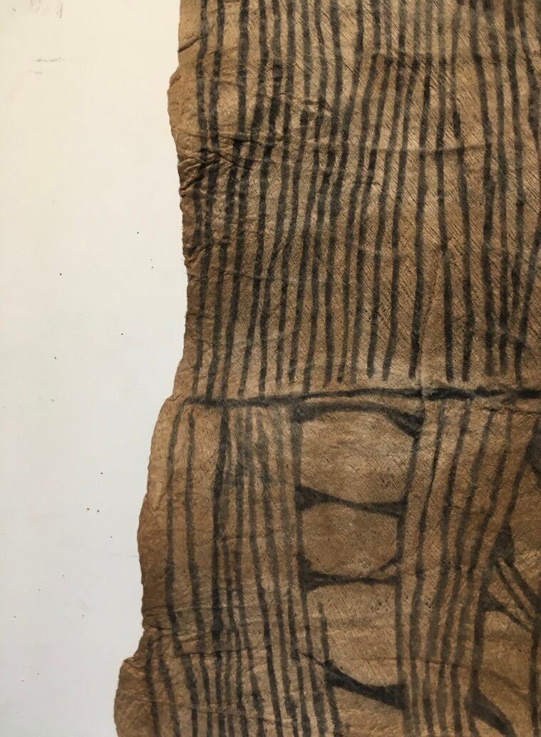 ** こちらはわりあいハリの有る硬めのタパになります、古いお品ですので経年と使用によるシミが所々に見られます。