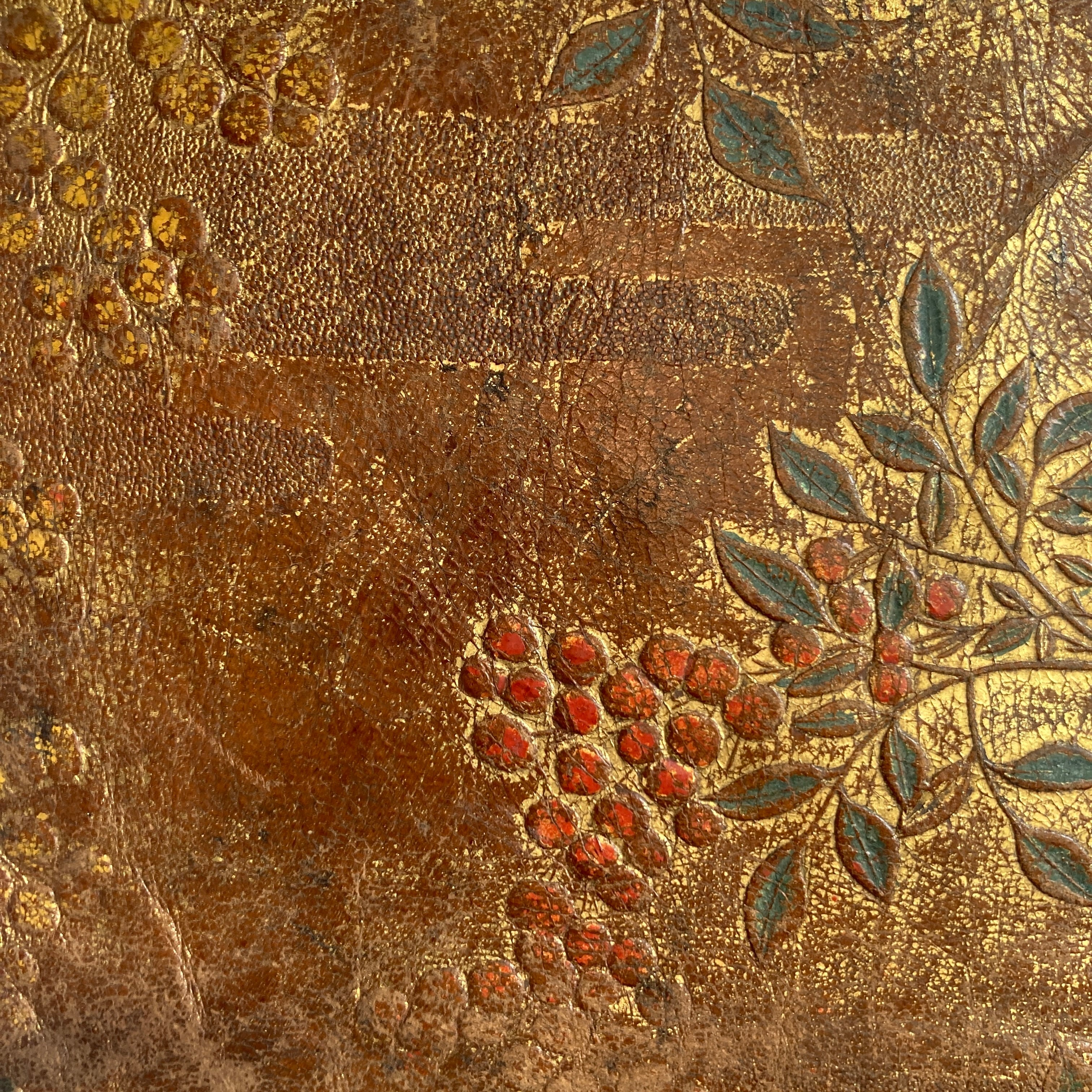 幕末から明治ごろに日本国内にて作られた和製金唐革かと思います。