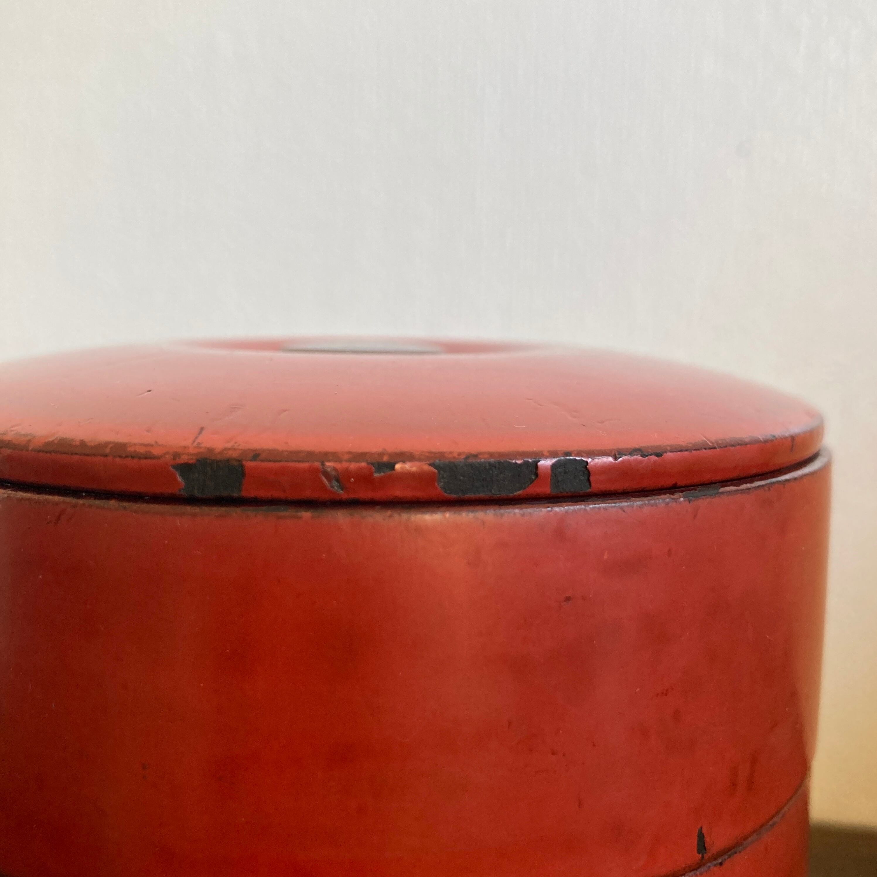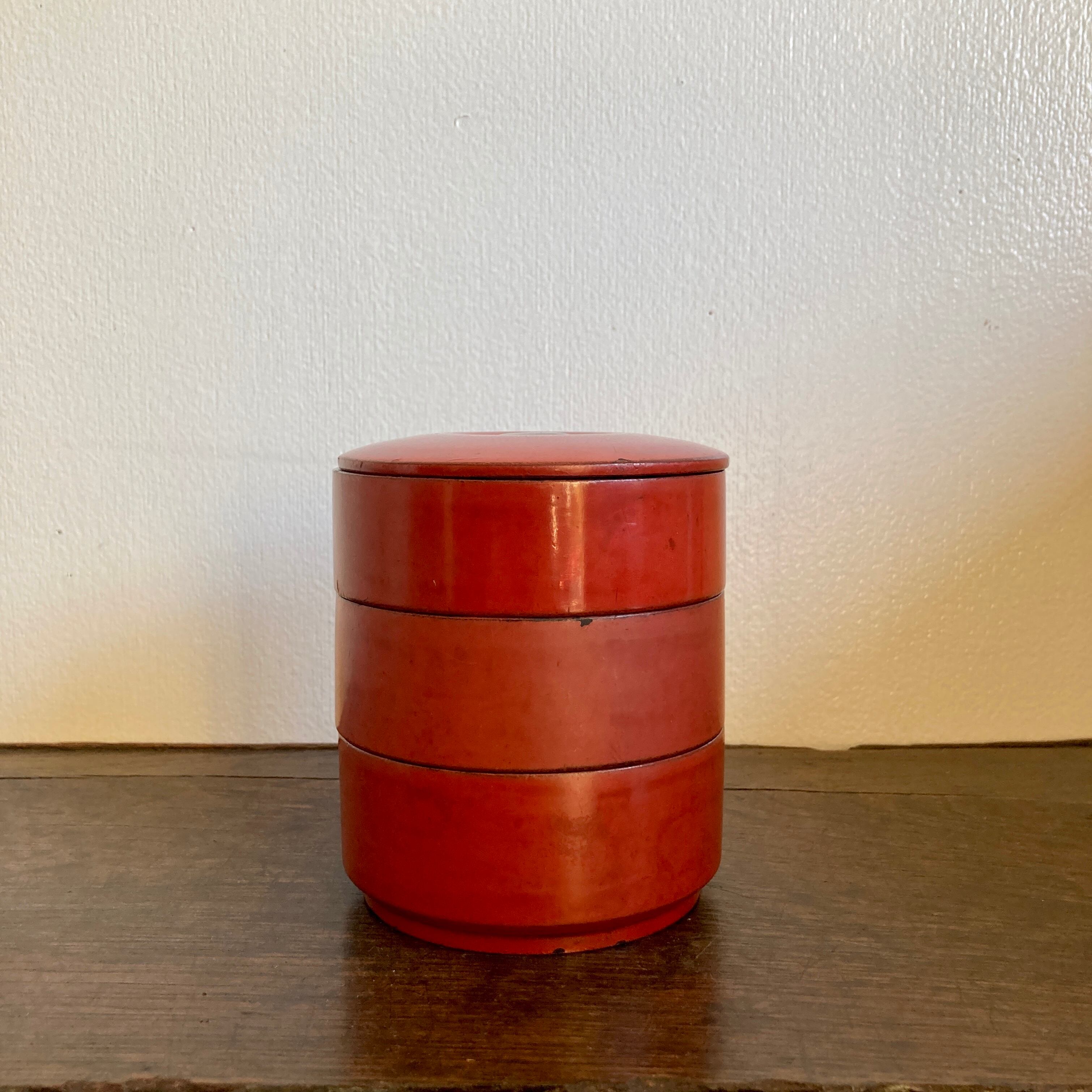 黒漆に朱漆を重ねた、根来手の3段重に出会いました。