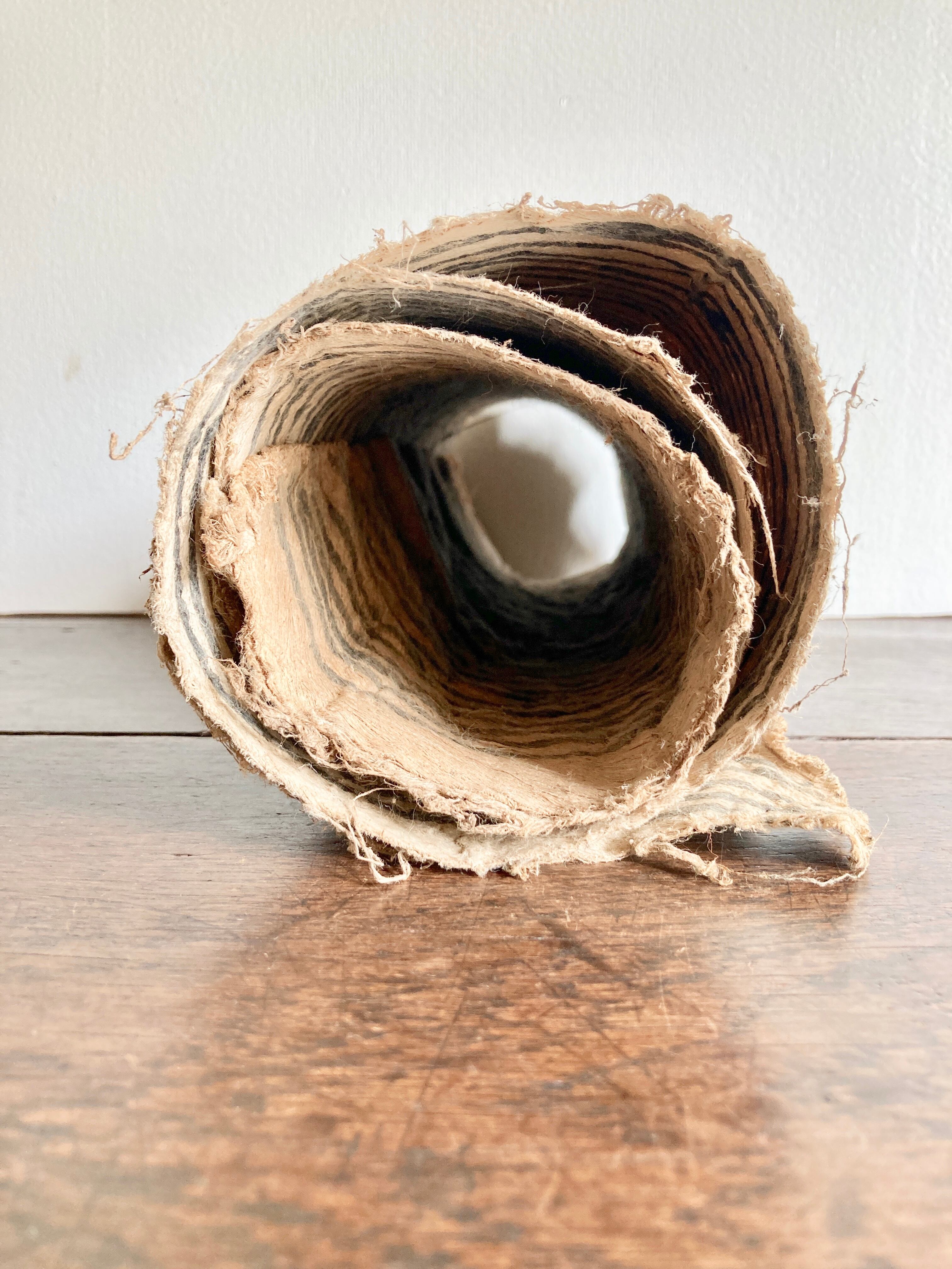 主観ですが今まで見て来たタパの中では厚みが有り(1.5mmほど)ハリとコシが強いタイプになります。サイズ感も長めですので、掛け軸代わりにしつらえても素敵。