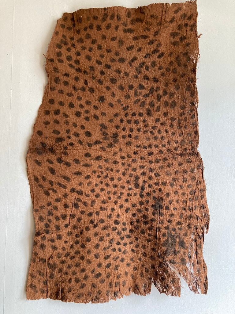 こちらのタパクロスには、 チーター の毛皮の文様を表したかのようなモチーフが全体的に