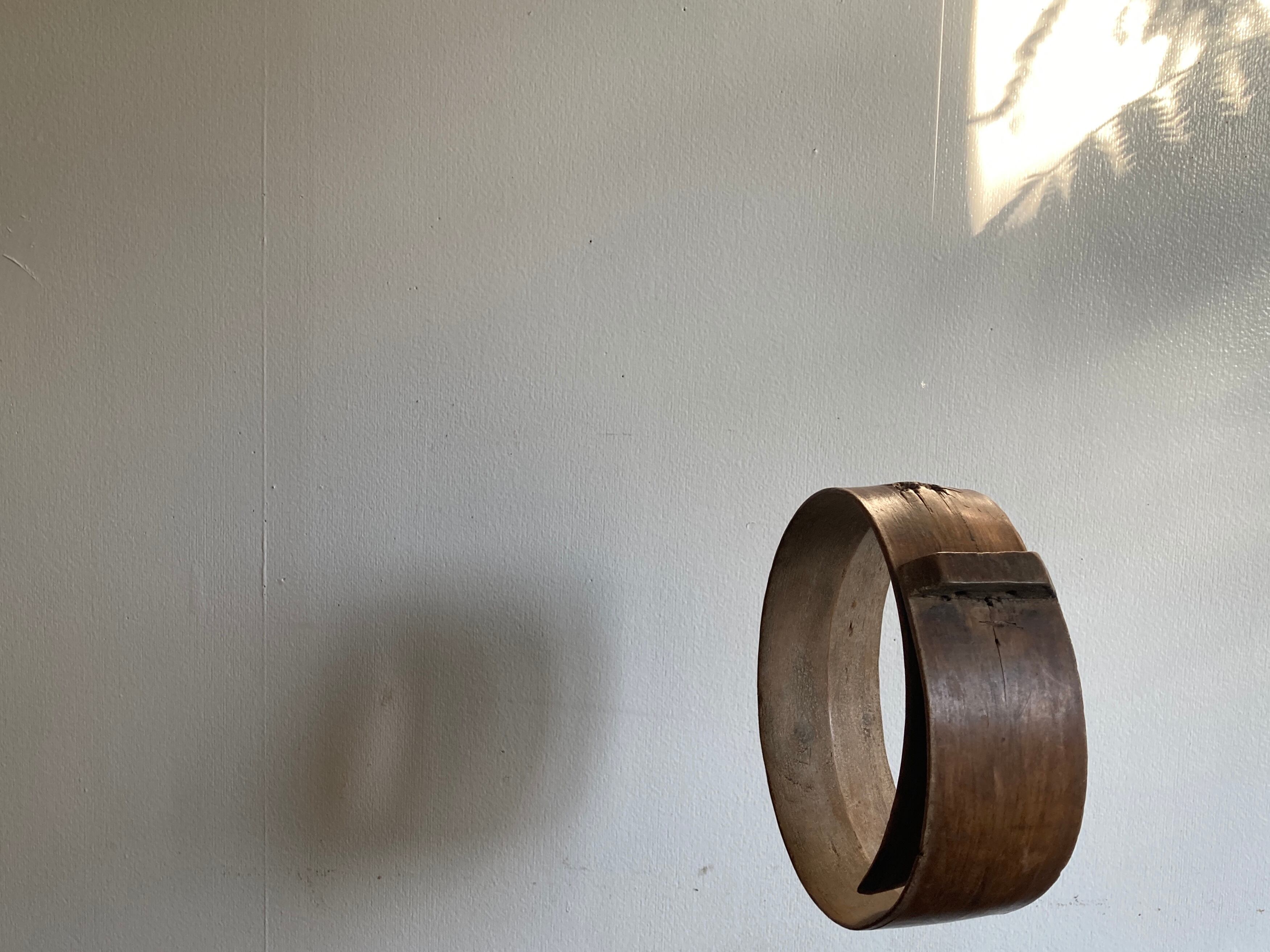 曲げ木の一木で彫られたカウベルの首輪部分の残欠のご紹介です。