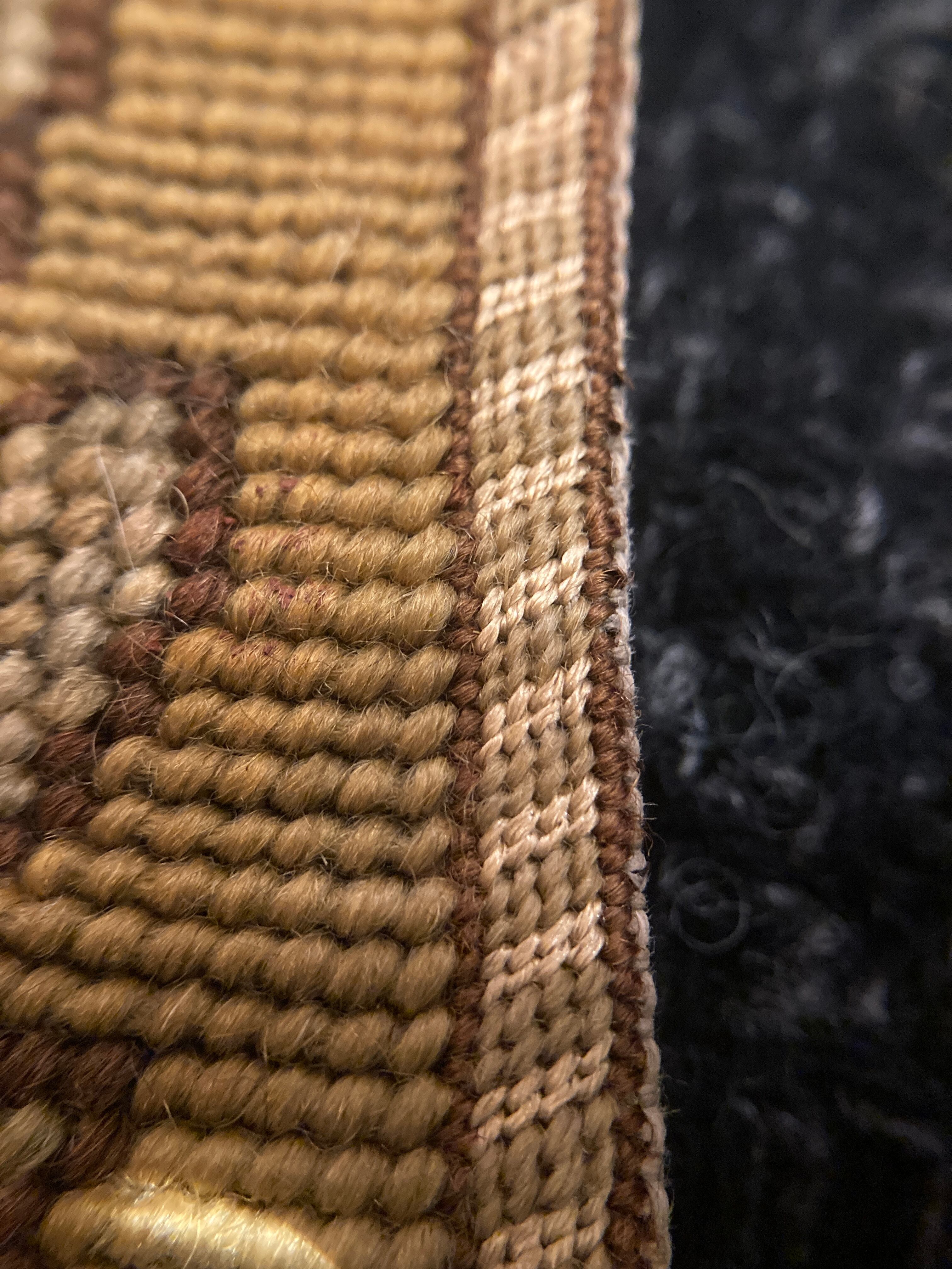 刺繍ならでは、手本にしたであろうゴブラン織の曲線的な表現をすべく