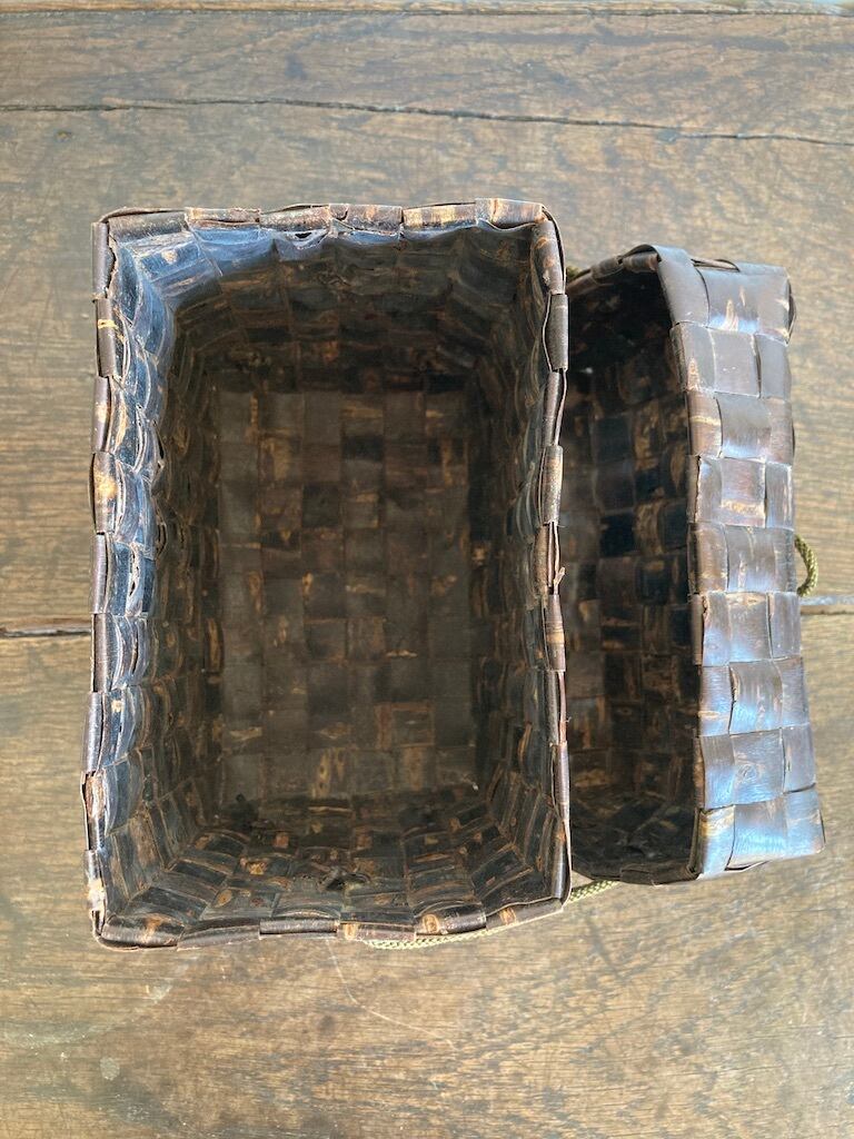 そんな山桜の樹皮を細長く(幅1.6cmほど)割り裂いて編み込み、身と蓋が形作られた樺籠です。
