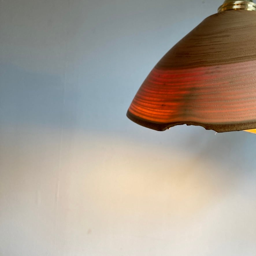 樹皮を残したタイプのランプシェード、ケヤキから挽き出されたもの。